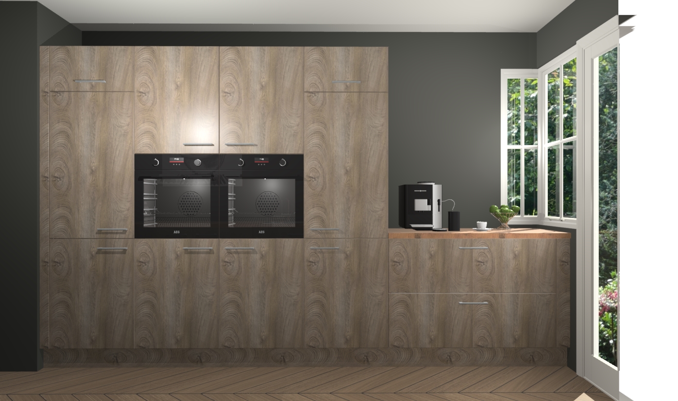 Een stijlvolle en praktische keuken als deze mag gezien worden. Dankzij de prachtige cantaro eiken matte afwerking wordt de keuken gemakkelijk het middelpunt van uw huis - hij ziet er geweldig uit onder allerlei lichtomstandigheden, van dag tot nacht!