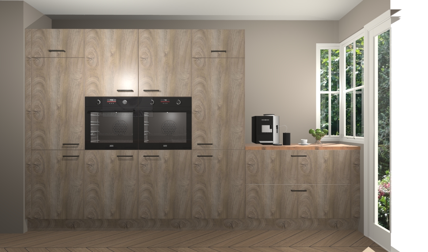 Een stijlvolle en praktische keuken als deze mag gezien worden. Dankzij de prachtige cantaro eiken matte afwerking wordt de keuken gemakkelijk het middelpunt van uw huis - hij ziet er geweldig uit onder allerlei lichtomstandigheden, van dag tot nacht!