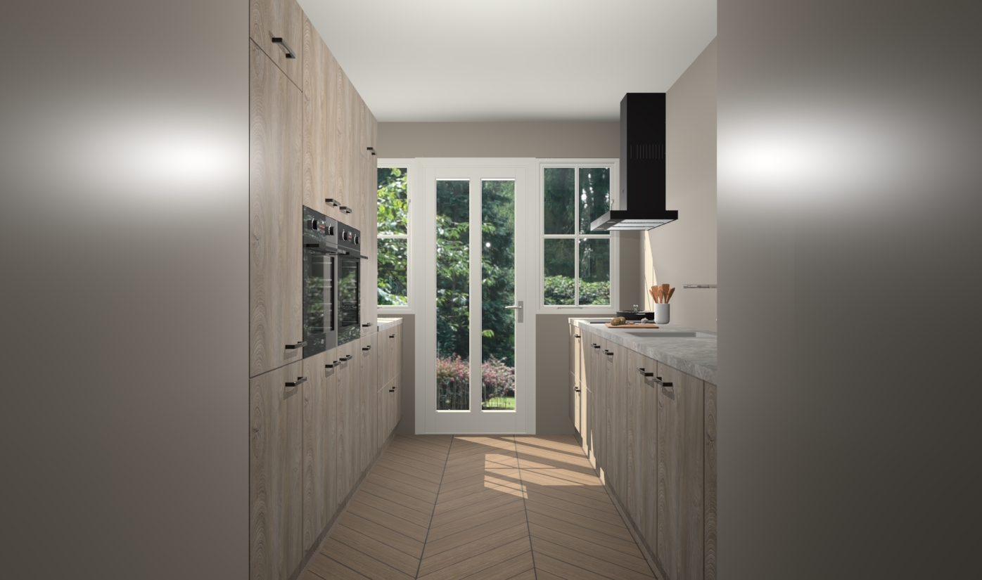 Een stijlvolle en praktische keuken als deze mag gezien worden. Dankzij de prachtige cantaro eiken matte afwerking wordt de keuken gemakkelijk het middelpunt van uw huis - hij ziet er geweldig uit onder allerlei lichtomstandigheden, van dag tot nacht!