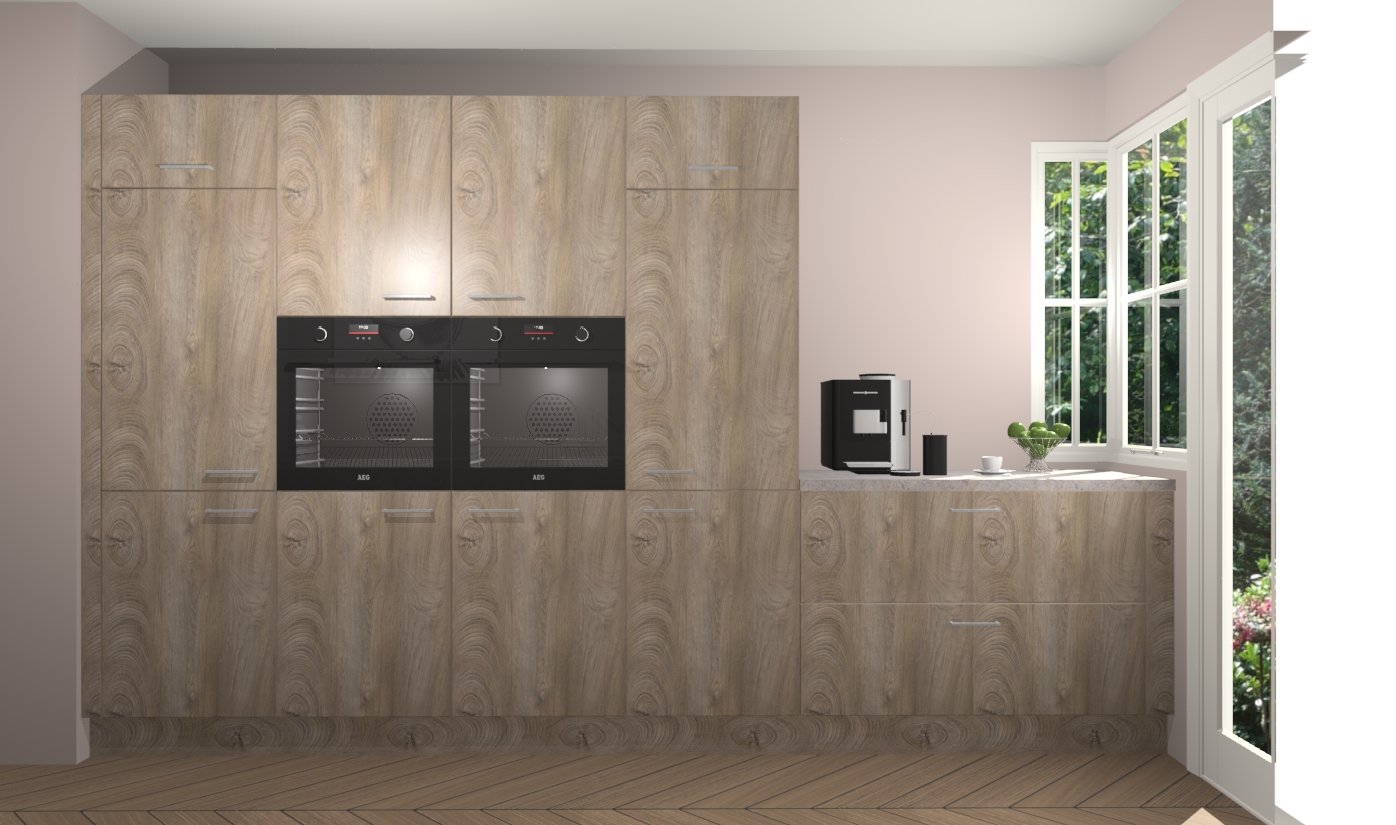 Een stijlvolle en praktische keuken als deze mag gezien worden. Dankzij de prachtige cantaro eiken matte afwerking wordt de keuken gemakkelijk het middelpunt van uw huis - hij ziet er geweldig uit onder allerlei lichtomstandigheden, van dag tot nacht!