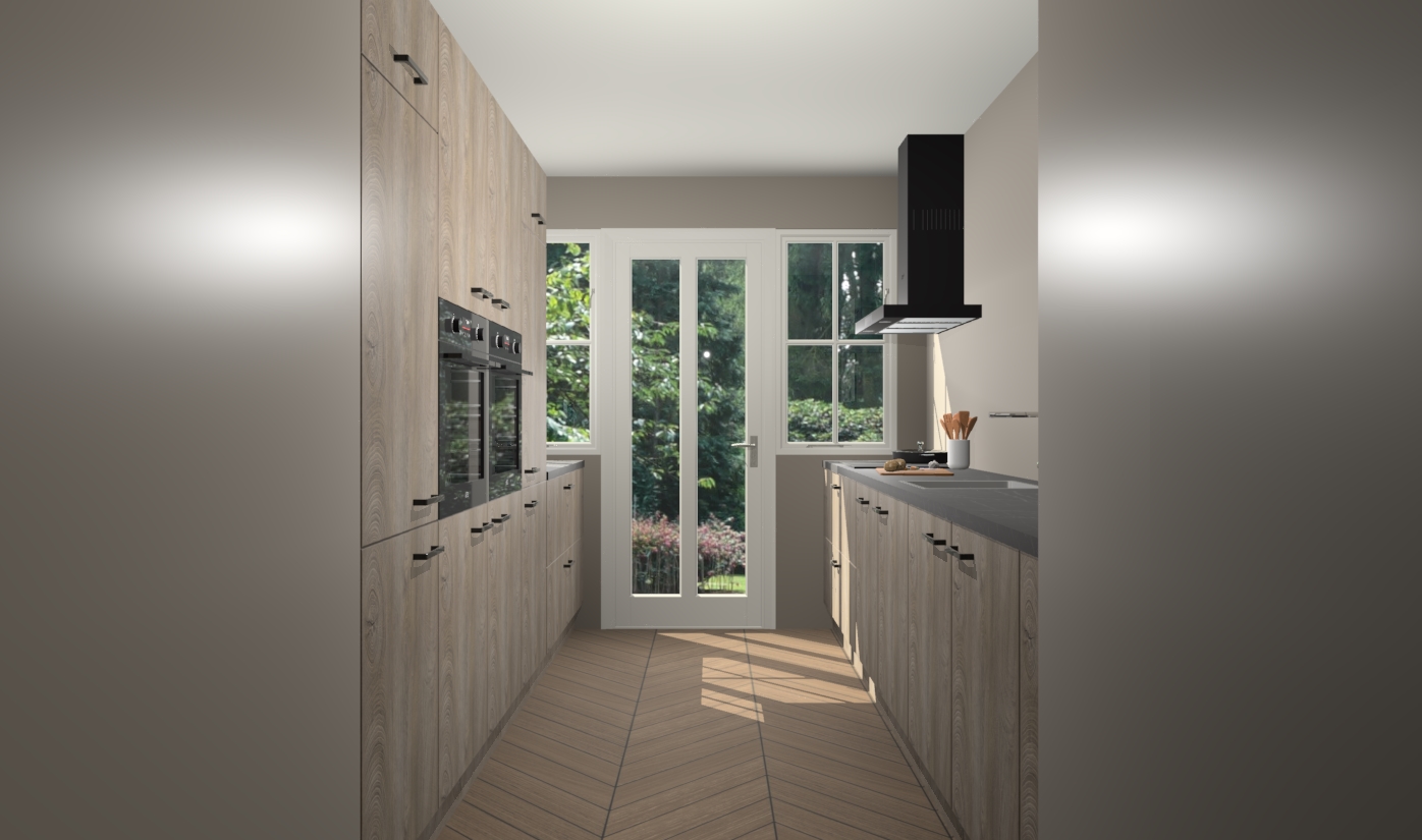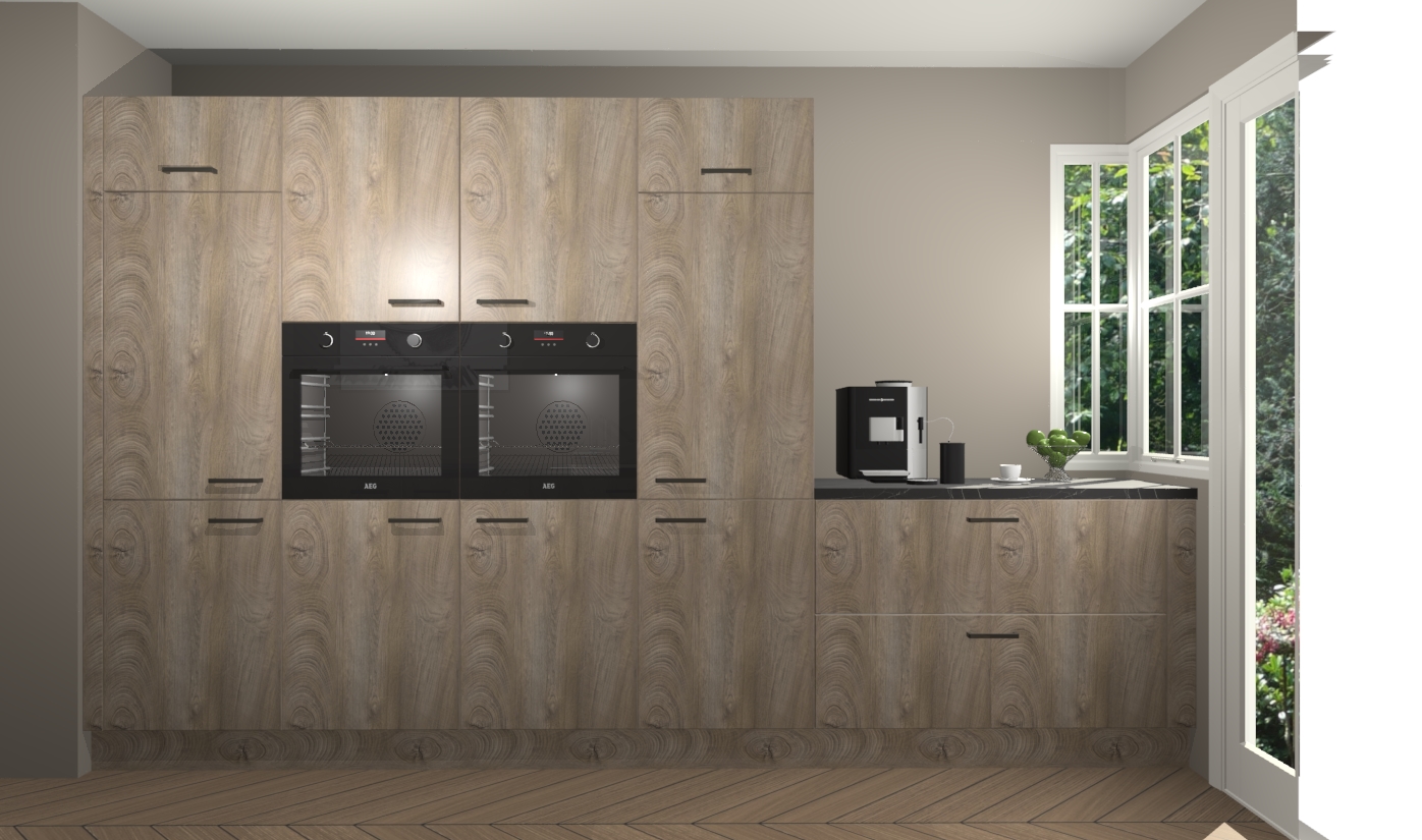 Een stijlvolle en praktische keuken als deze mag gezien worden. Dankzij de prachtige cantaro eiken matte afwerking wordt de keuken gemakkelijk het middelpunt van uw huis - hij ziet er geweldig uit onder allerlei lichtomstandigheden, van dag tot nacht!