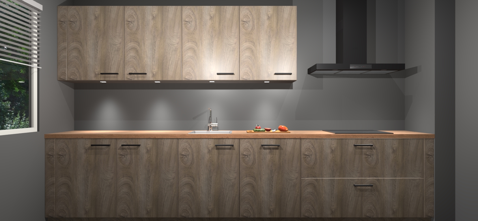Een stijlvolle en praktische keuken als deze mag gezien worden. Dankzij de prachtige Cantaro Eiken matte afwerking wordt de keuken gemakkelijk het middelpunt van uw huis - hij ziet er geweldig uit onder allerlei lichtomstandigheden, van dag tot nacht!
