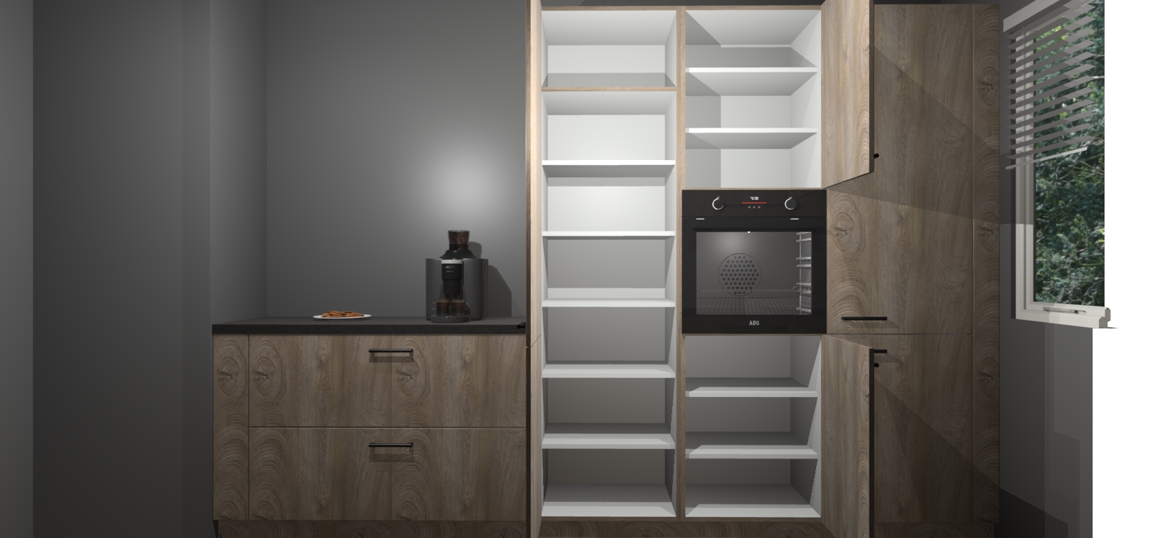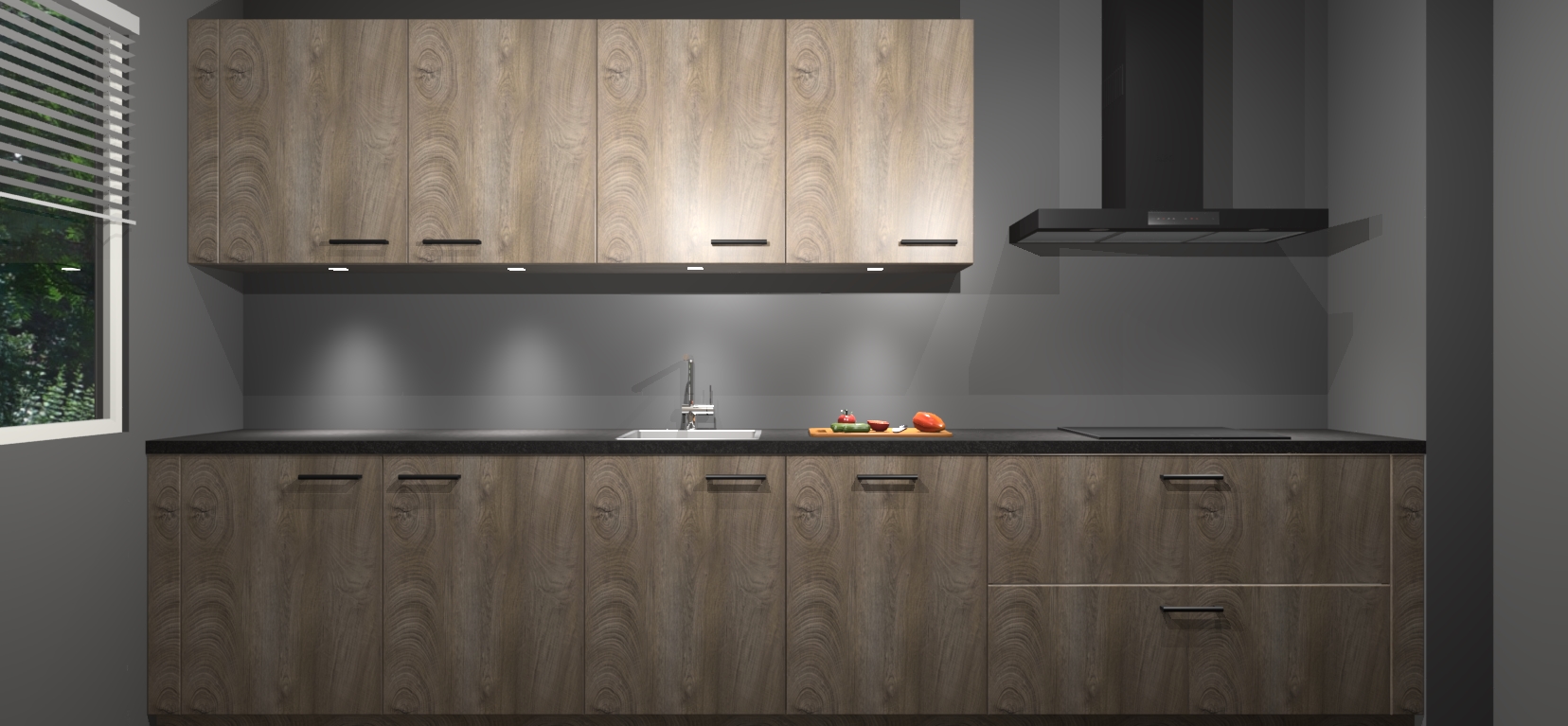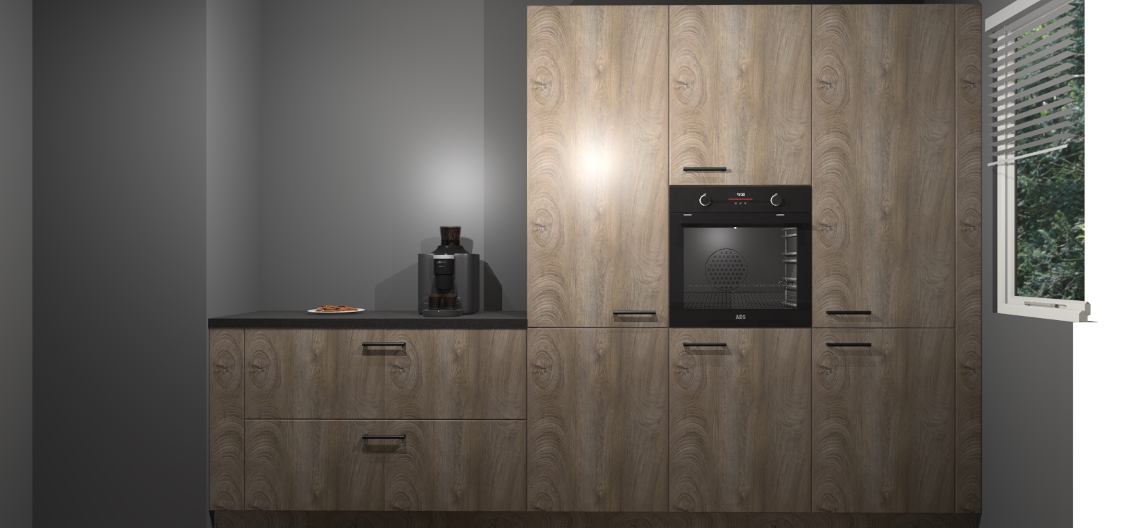 Een stijlvolle en praktische keuken als deze mag gezien worden. Dankzij de prachtige Cantaro Eiken matte afwerking wordt de keuken gemakkelijk het middelpunt van uw huis - hij ziet er geweldig uit onder allerlei lichtomstandigheden, van dag tot nacht!
