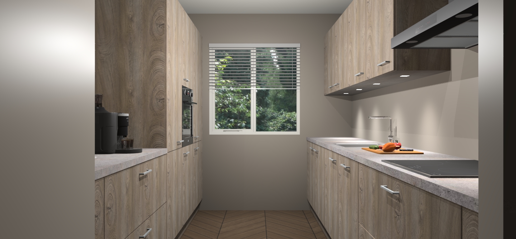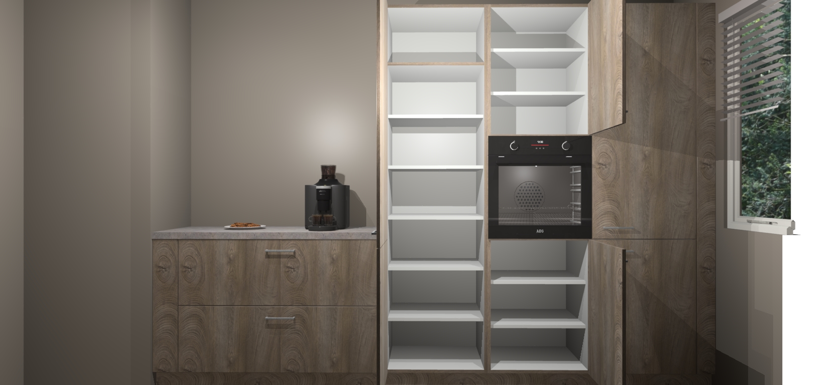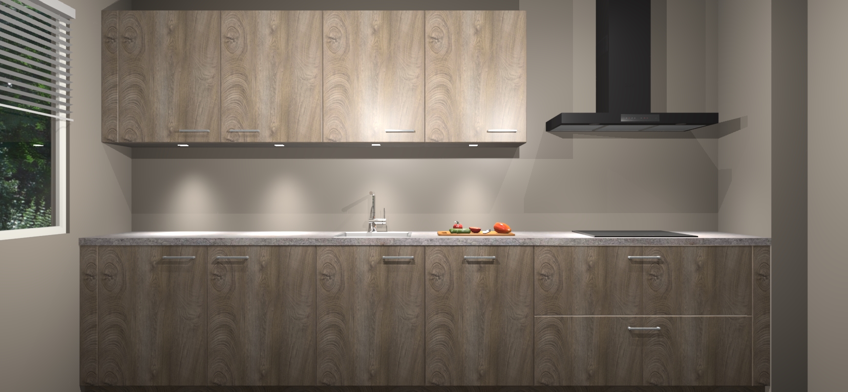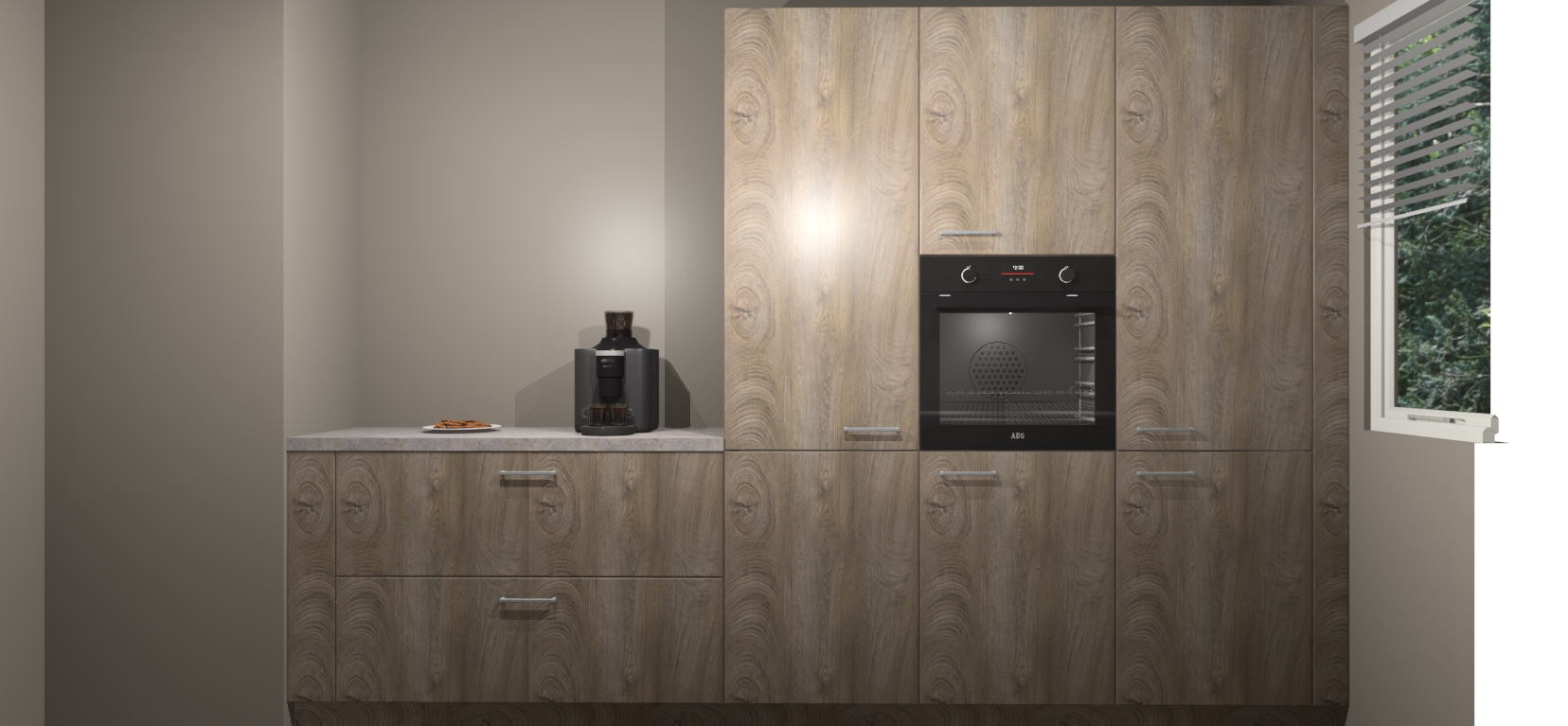 Een stijlvolle en praktische keuken als deze mag gezien worden. Dankzij de prachtige Cantaro Eiken matte afwerking wordt de keuken gemakkelijk het middelpunt van uw huis - hij ziet er geweldig uit onder allerlei lichtomstandigheden, van dag tot nacht!