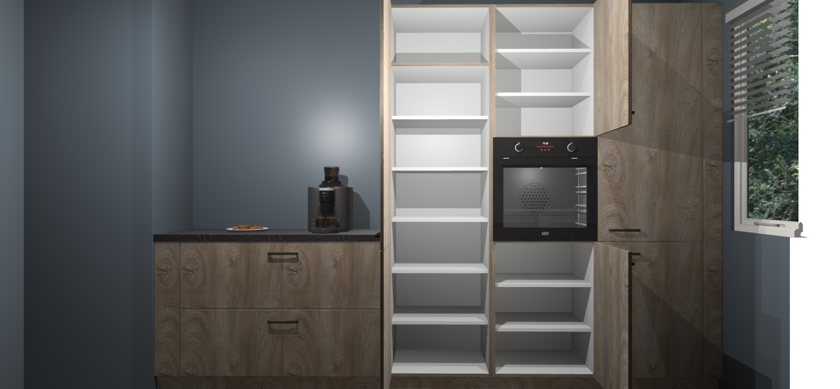 Een stijlvolle en praktische keuken als deze mag gezien worden. Dankzij de prachtige Cantaro Eiken matte afwerking wordt de keuken gemakkelijk het middelpunt van uw huis - hij ziet er geweldig uit onder allerlei lichtomstandigheden, van dag tot nacht!
