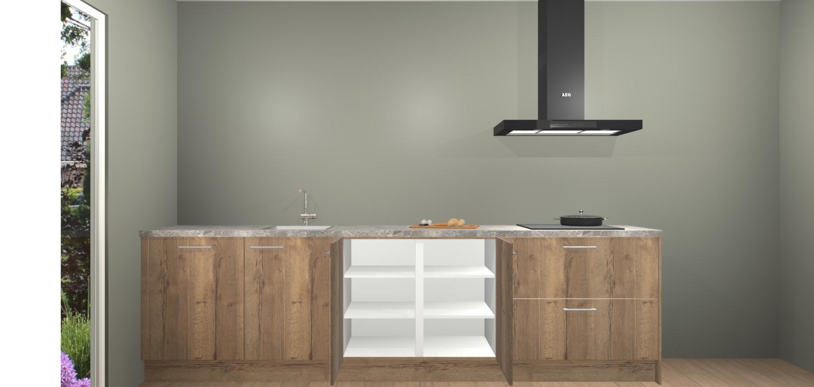 De softclose deuren openen en sluiten is ook heel eenvoudig - geniet van een moeiteloze keukenervaring, zelfs als er kinderen rondlopen. Voor extra gemak bij het plaatsen van uw bestelling bieden we ook een upgrade naar een kookplaat met geïntegreerde afzuiging.