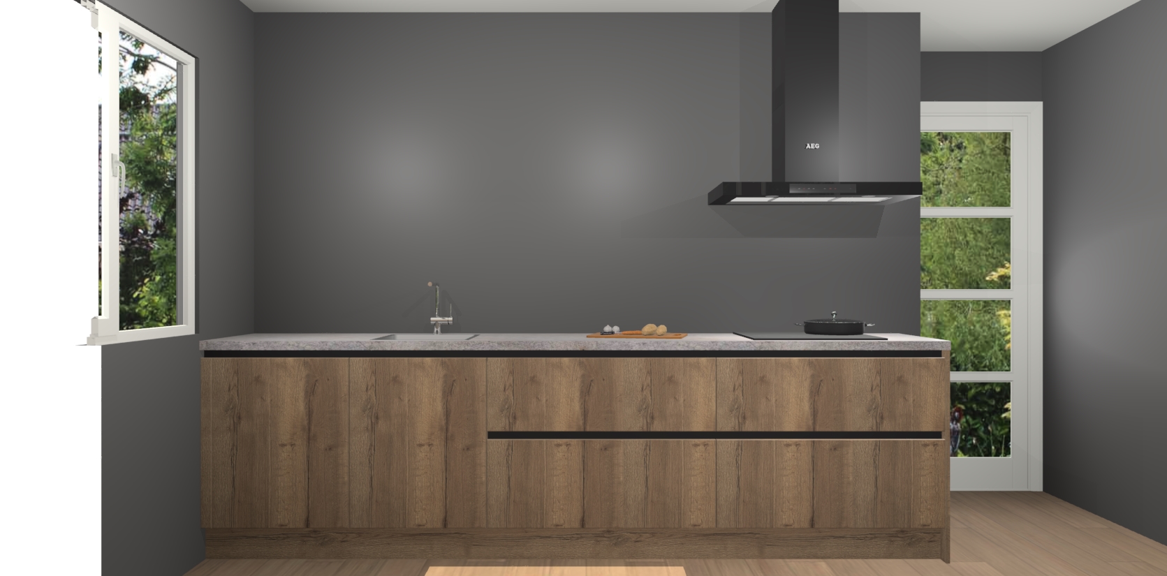 De softclose deuren openen en sluiten is ook heel eenvoudig - geniet van een moeiteloze keukenervaring, zelfs als er kinderen rondlopen. Voor extra gemak bij het plaatsen van uw bestelling bieden we ook een upgrade naar een kookplaat met geïntegreerde afzuiging.