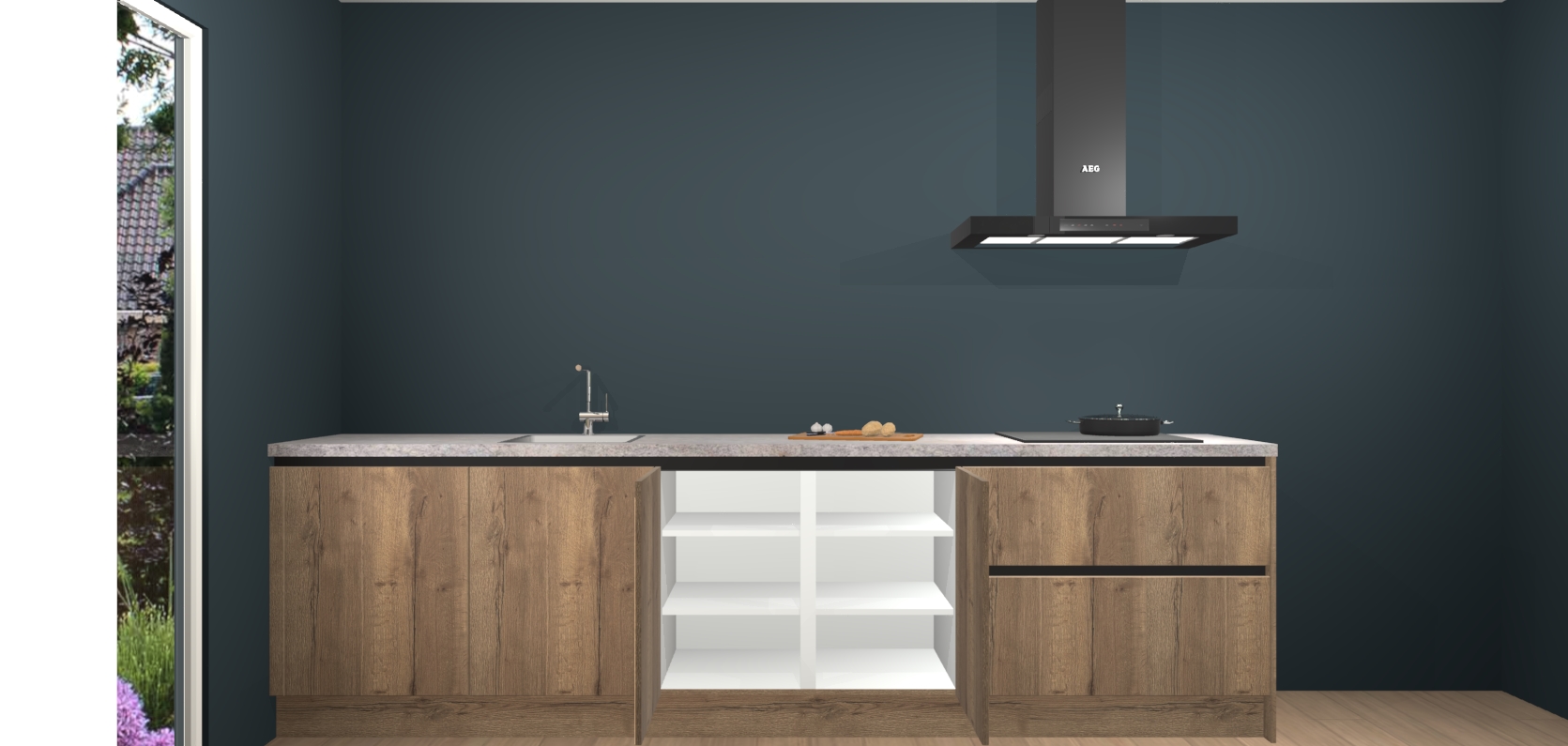 De softclose deuren openen en sluiten is ook heel eenvoudig - geniet van een moeiteloze keukenervaring, zelfs als er kinderen rondlopen. Voor extra gemak bij het plaatsen van uw bestelling bieden we ook een upgrade naar een kookplaat met geïntegreerde afzuiging.