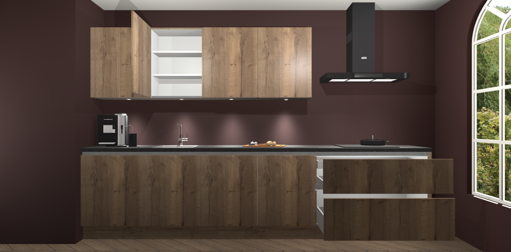 Maak van uw keuken een plek waar u trots op bent - trakteer uzelf vandaag nog op de kwaliteit en elegantie van de Chocolade Eiken greeploze keuken Dawei!