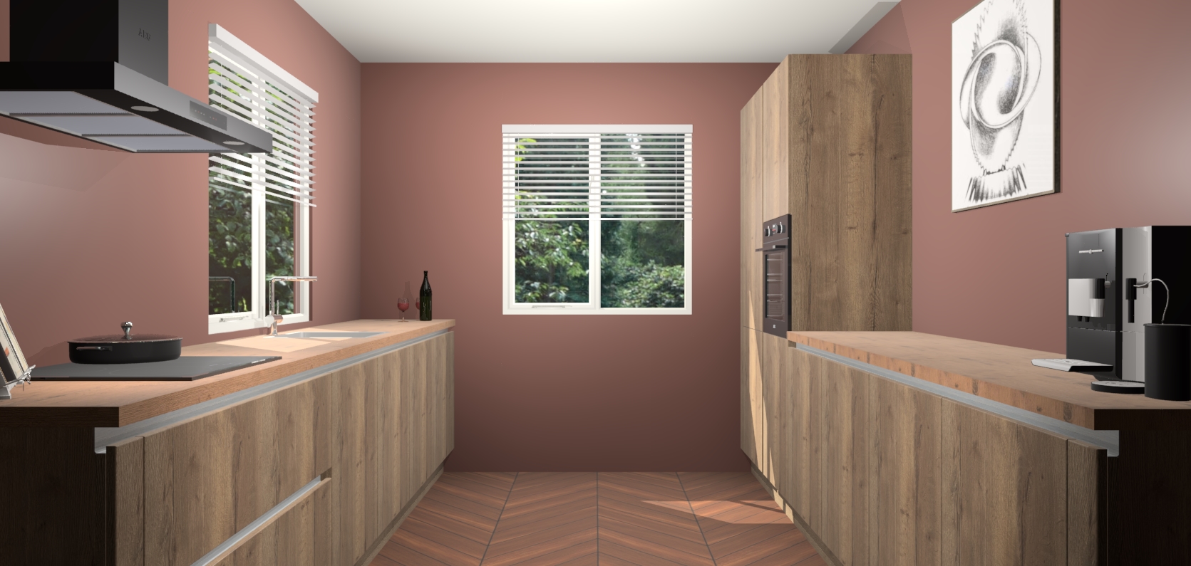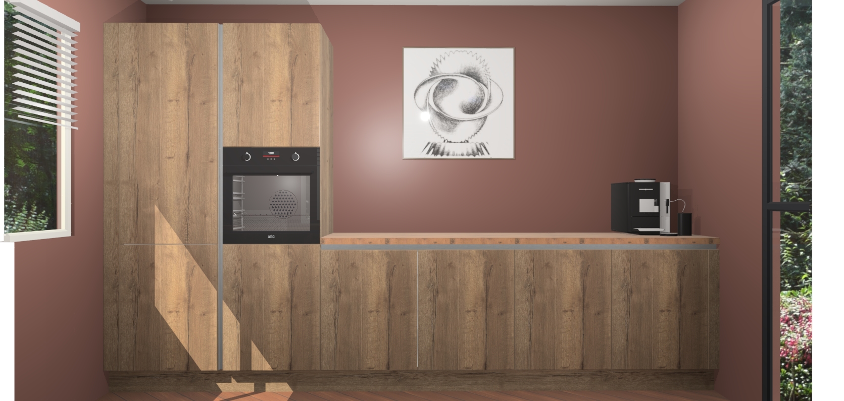 Welkom bij de Chocolade Eiken greeploze keuken Lusaka. Deze prachtige keuken zal de komende jaren het middelpunt van de belangstelling in uw huis zijn. Uitgerust met vijf inbouwapparaten komt u nooit kookgereedschap tekort. Bovendien geeft de warme houtlook elke ruimte een uitnodigende en tijdloze uitstraling.