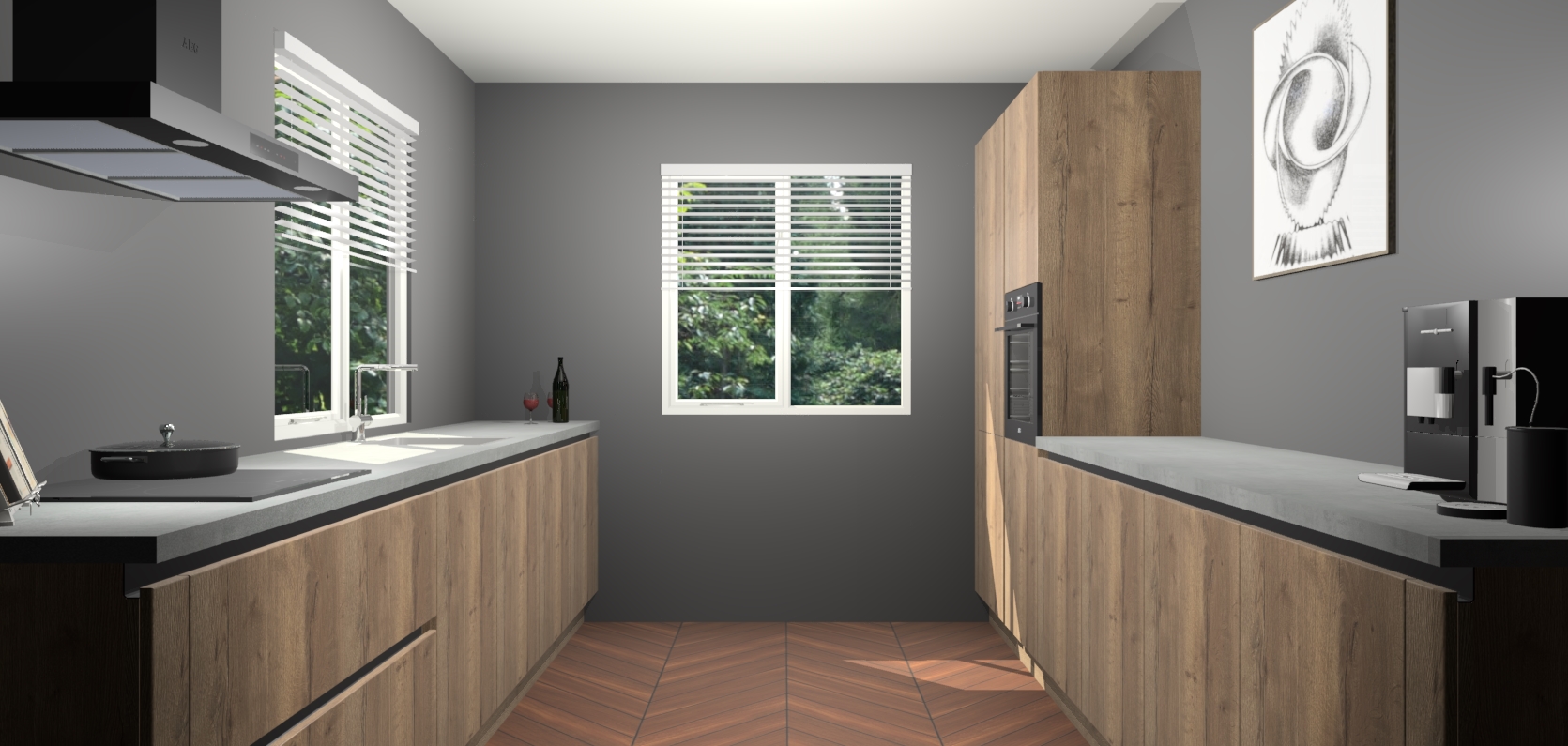 Welkom bij de Chocolade Eiken greeploze keuken Lusaka. Deze prachtige keuken zal de komende jaren het middelpunt van de belangstelling in uw huis zijn. Uitgerust met vijf inbouwapparaten komt u nooit kookgereedschap tekort. Bovendien geeft de warme houtlook elke ruimte een uitnodigende en tijdloze uitstraling.