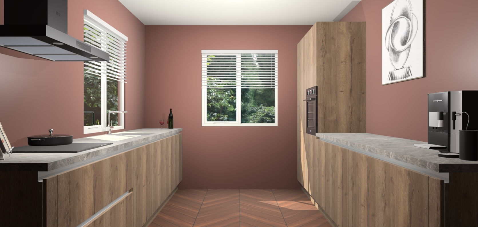 Welkom bij de Chocolade Eiken greeploze keuken Lusaka. Deze prachtige keuken zal de komende jaren het middelpunt van de belangstelling in uw huis zijn. Uitgerust met vijf inbouwapparaten komt u nooit kookgereedschap tekort. Bovendien geeft de warme houtlook elke ruimte een uitnodigende en tijdloze uitstraling.