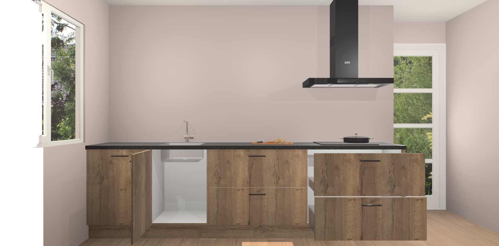 De softclose deuren openen en sluiten is ook heel eenvoudig - geniet van een moeiteloze keukenervaring, zelfs als er kinderen rondlopen. Voor extra gemak bij het plaatsen van uw bestelling bieden we ook een upgrade naar een kookplaat met geïntegreerde afzuiging.