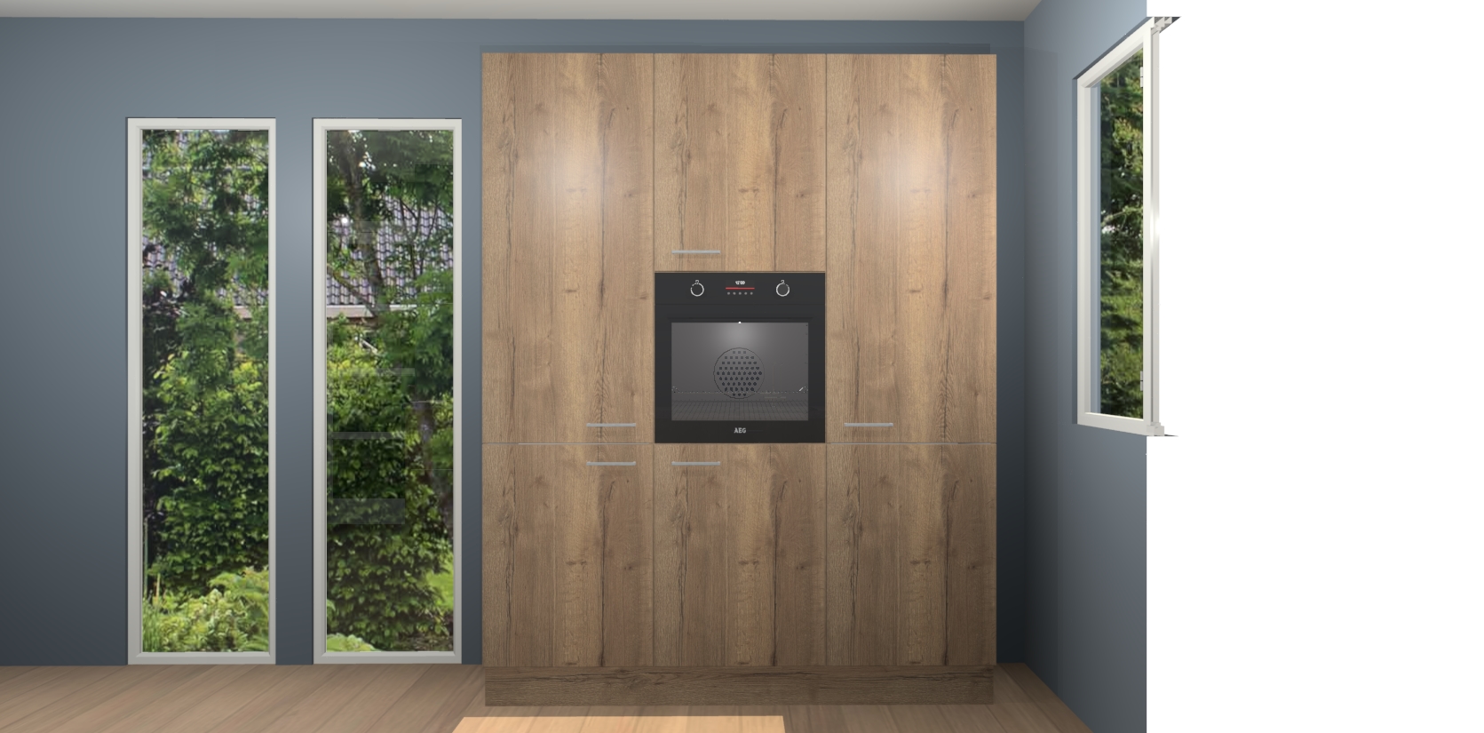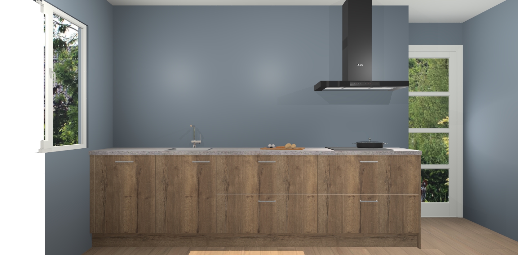 De softclose deuren openen en sluiten is ook heel eenvoudig - geniet van een moeiteloze keukenervaring, zelfs als er kinderen rondlopen. Voor extra gemak bij het plaatsen van uw bestelling bieden we ook een upgrade naar een kookplaat met geïntegreerde afzuiging.
