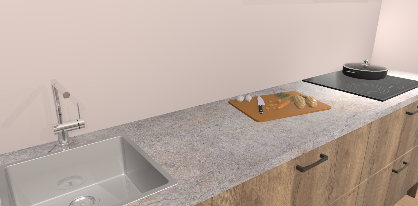- Uitsparing van kookplaat, spoelbak en kraan dient u zelf te verzorgen.
