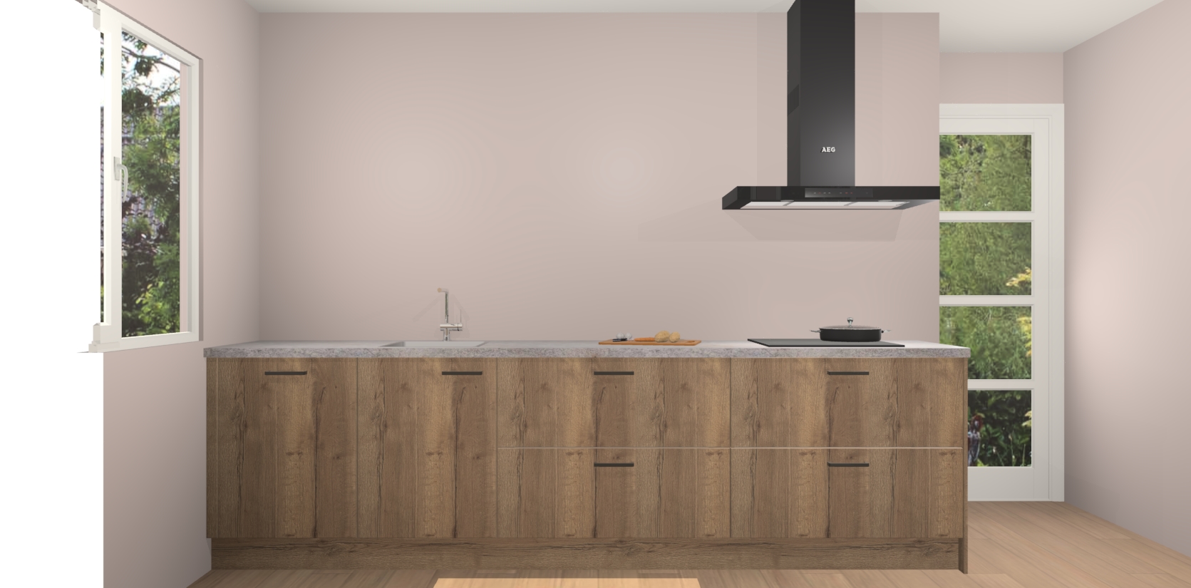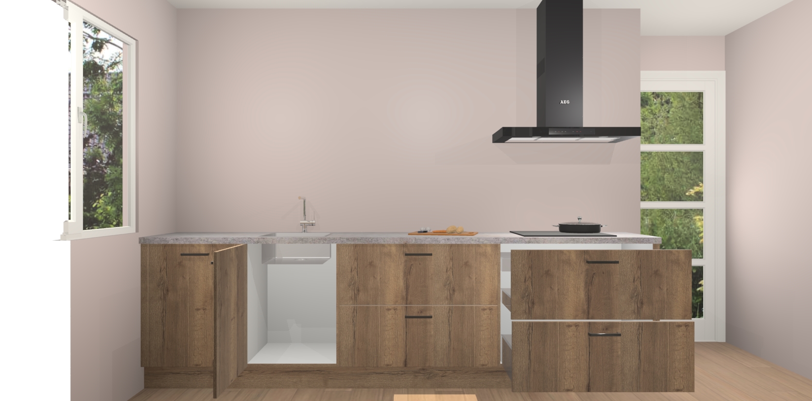 De softclose deuren openen en sluiten is ook heel eenvoudig - geniet van een moeiteloze keukenervaring, zelfs als er kinderen rondlopen. Voor extra gemak bij het plaatsen van uw bestelling bieden we ook een upgrade naar een kookplaat met geïntegreerde afzuiging.