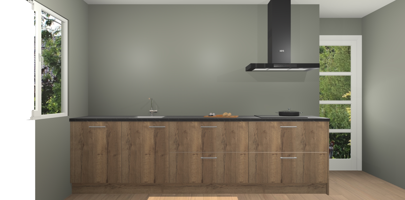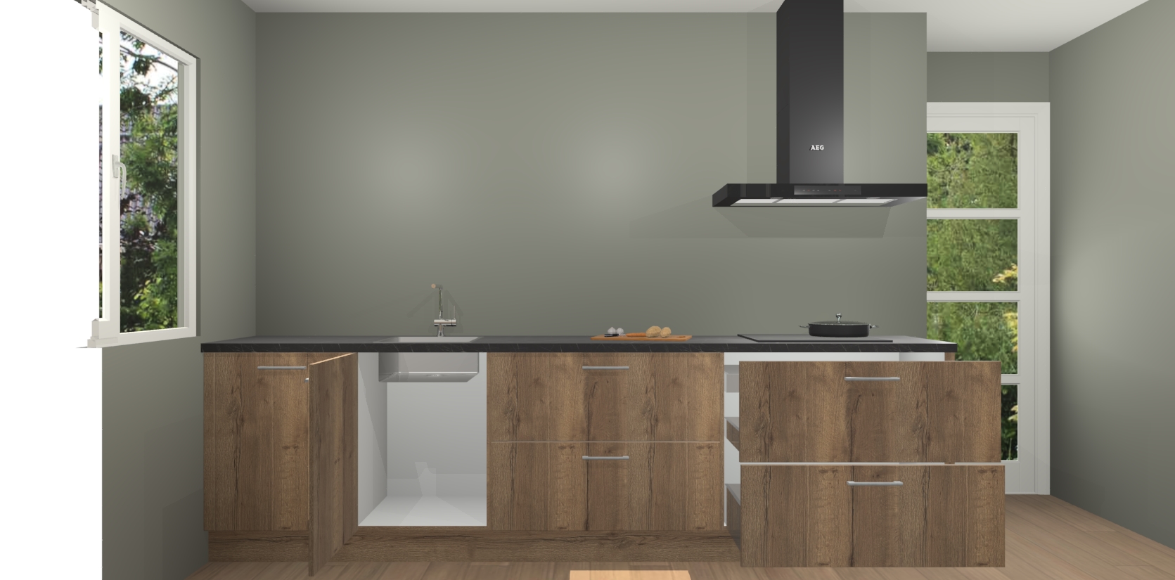 De softclose deuren openen en sluiten is ook heel eenvoudig - geniet van een moeiteloze keukenervaring, zelfs als er kinderen rondlopen. Voor extra gemak bij het plaatsen van uw bestelling bieden we ook een upgrade naar een kookplaat met geïntegreerde afzuiging.