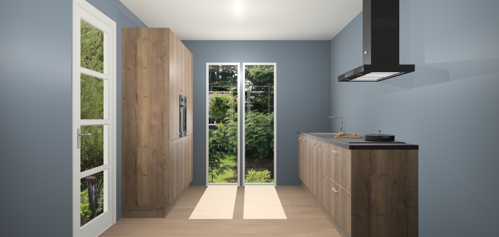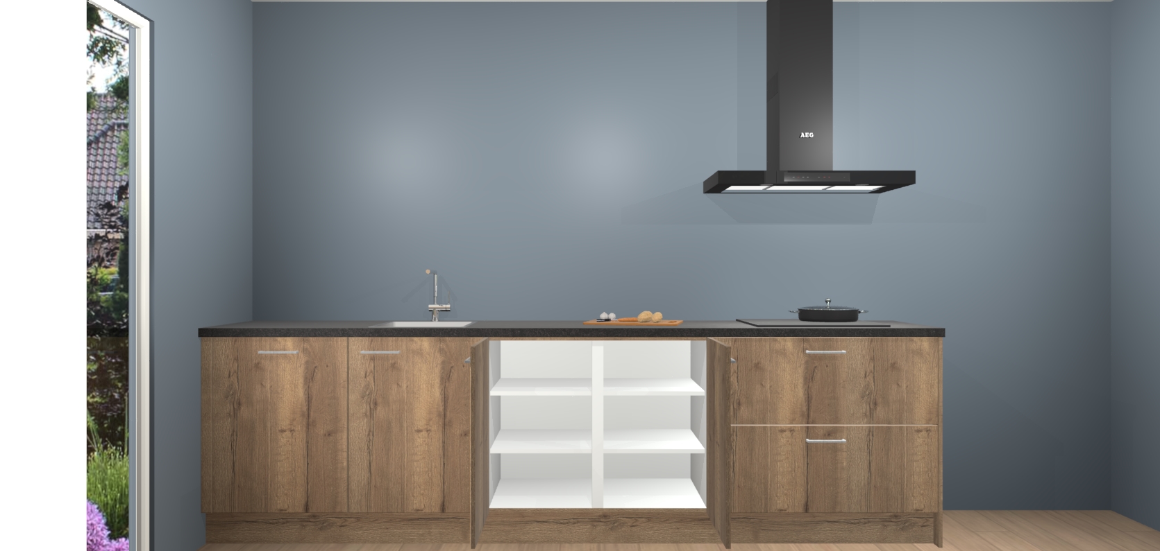 De softclose deuren openen en sluiten is ook heel eenvoudig - geniet van een moeiteloze keukenervaring, zelfs als er kinderen rondlopen. Voor extra gemak bij het plaatsen van uw bestelling bieden we ook een upgrade naar een kookplaat met geïntegreerde afzuiging.