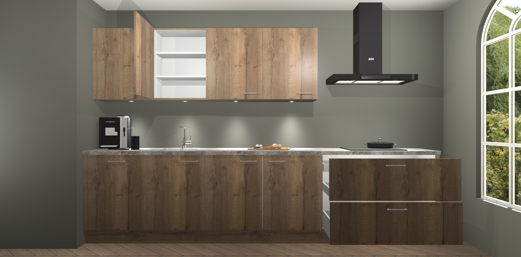 De softclose deuren openen en sluiten is ook heel eenvoudig - geniet van een moeiteloze keukenervaring, zelfs als er kinderen rondlopen. Voor extra gemak bij het plaatsen van uw bestelling bieden we ook een upgrade naar een kookplaat met geïntegreerde afzuiging.