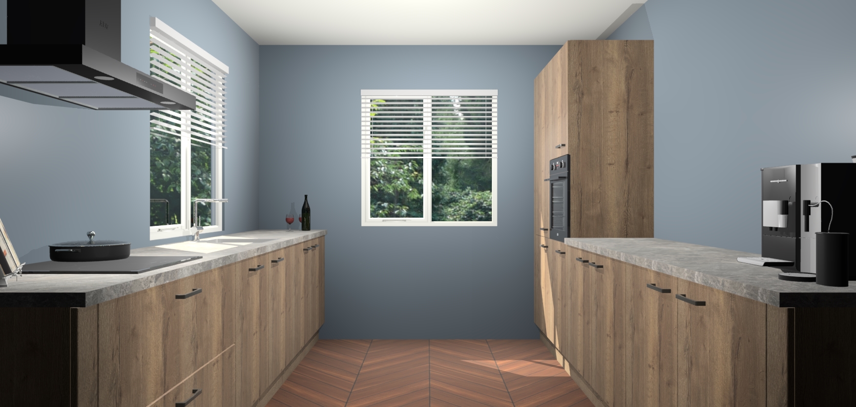 Welkom bij de Chocolade Eiken keuken Lusaka. Deze prachtige keuken zal de komende jaren het middelpunt van de belangstelling in uw huis zijn. Uitgerust met vijf inbouwapparaten komt u nooit kookgereedschap tekort. Bovendien geeft de warme houtlook elke ruimte een uitnodigende en tijdloze uitstraling.