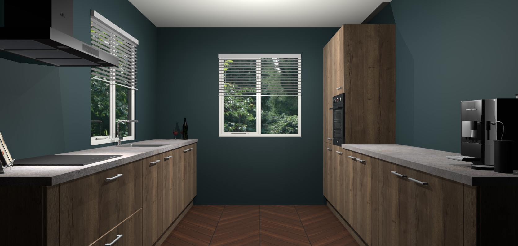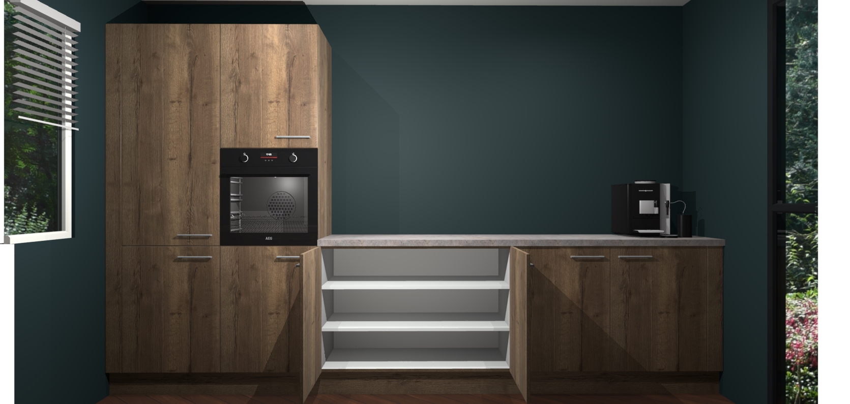 Welkom bij de Chocolade Eiken keuken Lusaka. Deze prachtige keuken zal de komende jaren het middelpunt van de belangstelling in uw huis zijn. Uitgerust met vijf inbouwapparaten komt u nooit kookgereedschap tekort. Bovendien geeft de warme houtlook elke ruimte een uitnodigende en tijdloze uitstraling.
