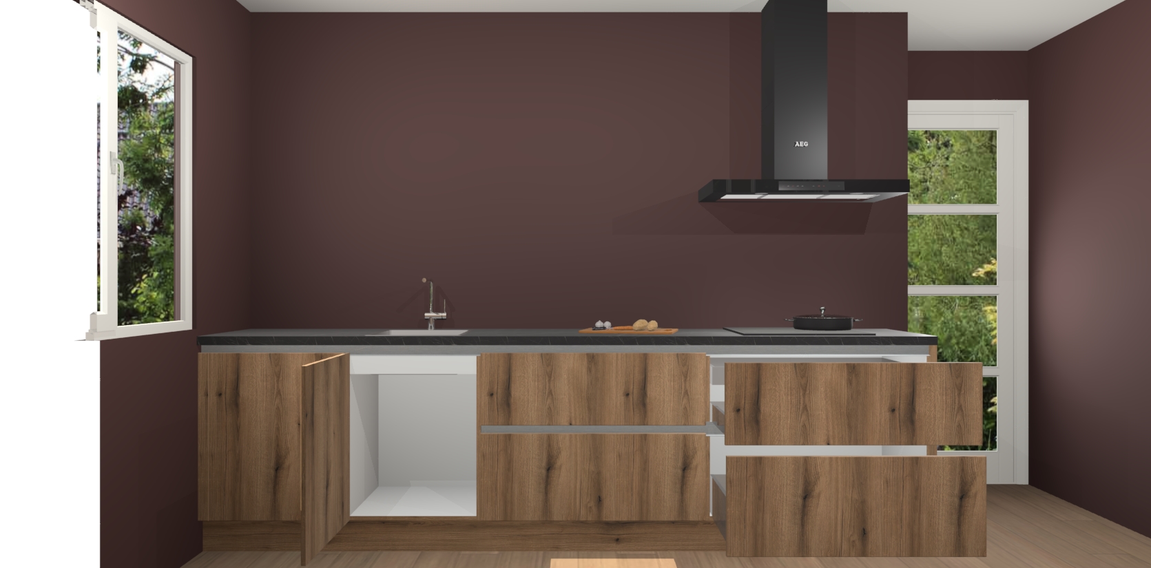 De softclose deuren openen en sluiten is ook heel eenvoudig - geniet van een moeiteloze keukenervaring, zelfs als er kinderen rondlopen. Voor extra gemak bij het plaatsen van uw bestelling bieden we ook een upgrade naar een kookplaat met geïntegreerde afzuiging.