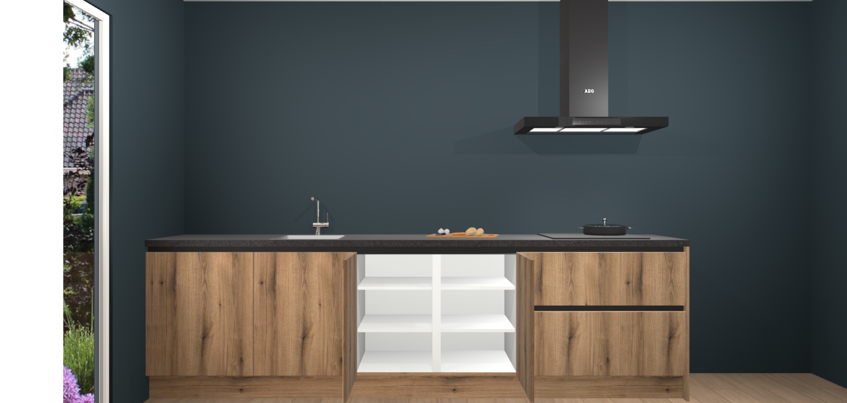 De softclose deuren openen en sluiten is ook heel eenvoudig - geniet van een moeiteloze keukenervaring, zelfs als er kinderen rondlopen. Voor extra gemak bij het plaatsen van uw bestelling bieden we ook een upgrade naar een kookplaat met geïntegreerde afzuiging.