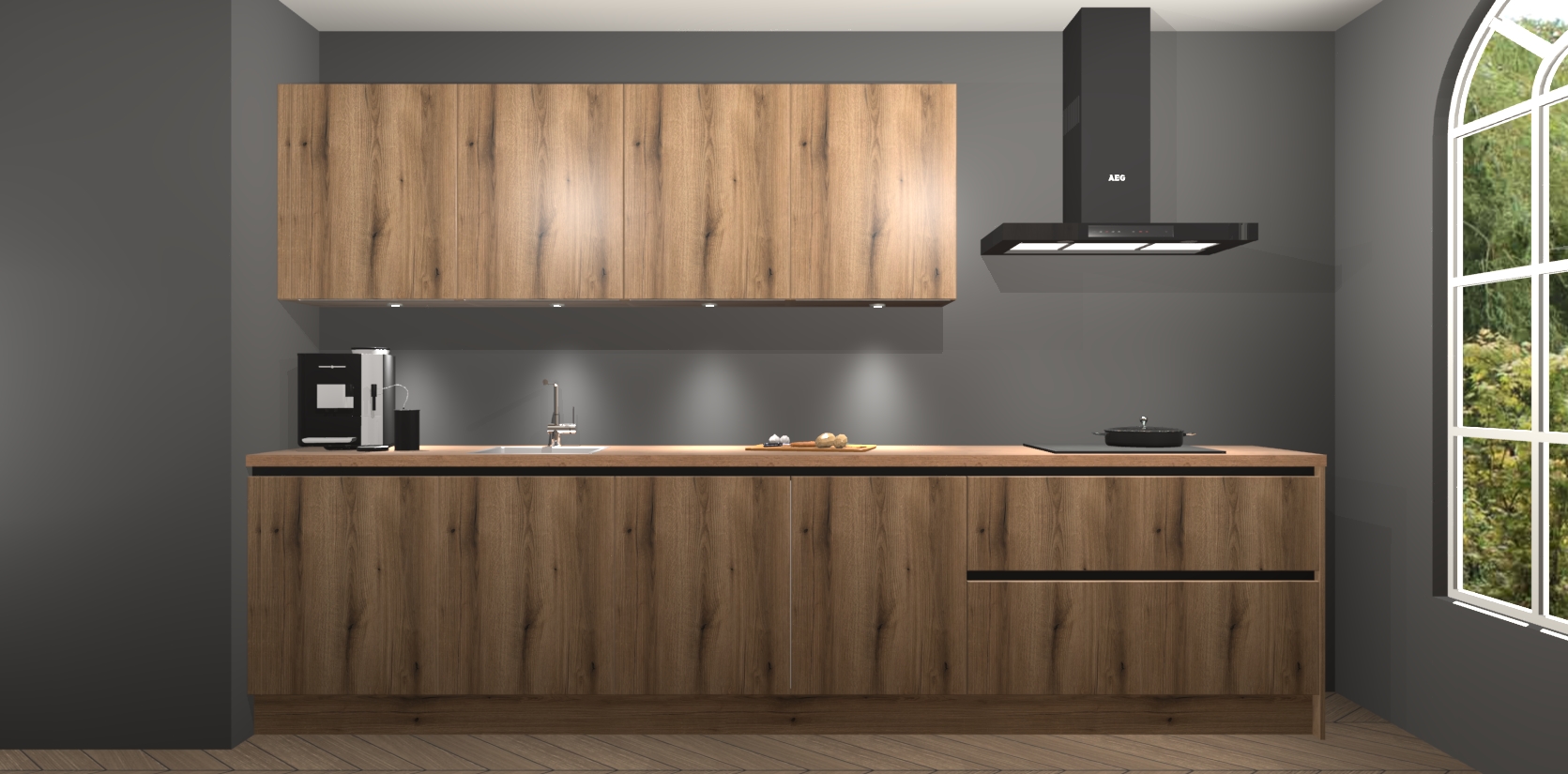 Maak van uw keuken een plek waar u trots op bent - trakteer uzelf vandaag nog op de kwaliteit en elegantie van de Goud Eiken greeploze keuken Dawei!