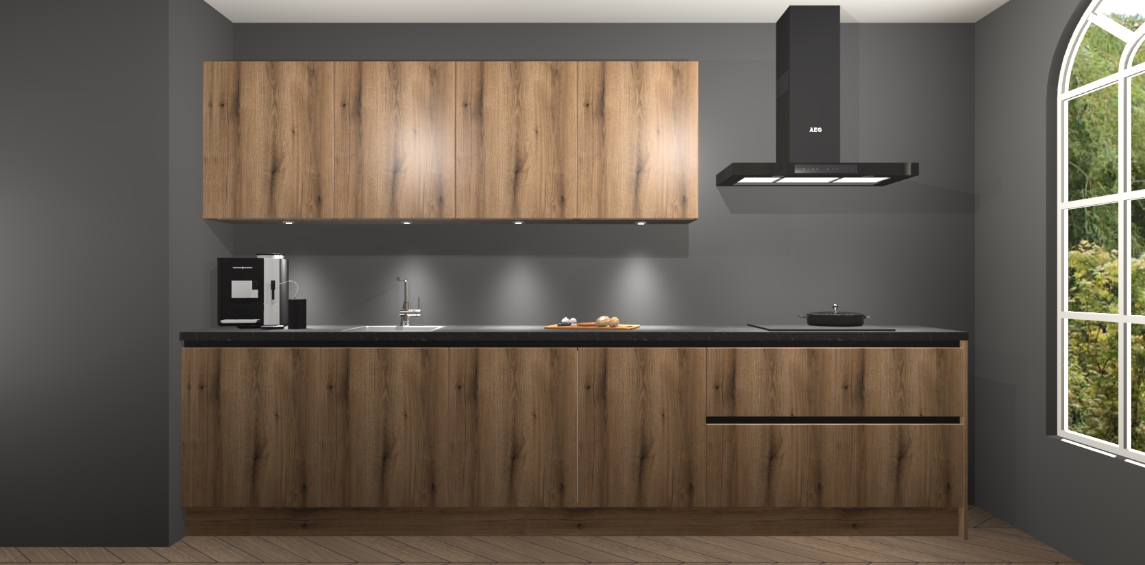 Maak van uw keuken een plek waar u trots op bent - trakteer uzelf vandaag nog op de kwaliteit en elegantie van de Goud Eiken greeploze keuken Dawei!