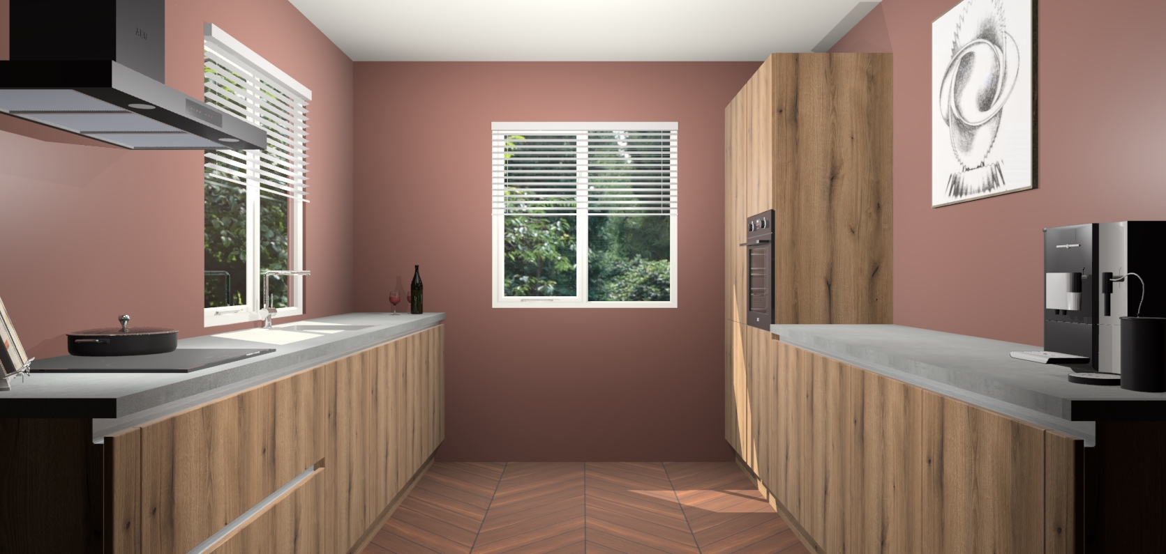 Welkom bij de Goud Eiken greeploze keuken Lusaka. Deze prachtige keuken zal de komende jaren het middelpunt van de belangstelling in uw huis zijn. Uitgerust met vijf inbouwapparaten komt u nooit kookgereedschap tekort. Bovendien geeft de warme houtlook elke ruimte een uitnodigende en tijdloze uitstraling.