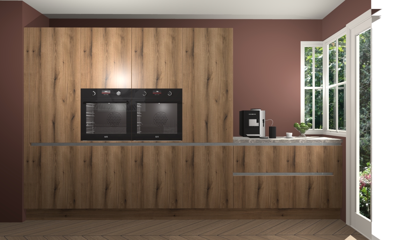 Bent u op zoek naar een opvallende keuken die uw stijl en smaak weerspiegelt? Zo ja, dan is onze prachtige Goud Eiken greeploze keuken Olympia de perfecte oplossing. Deze prachtige keuken biedt een unieke combinatie van geraffineerd modern design en gebruiksgemak.