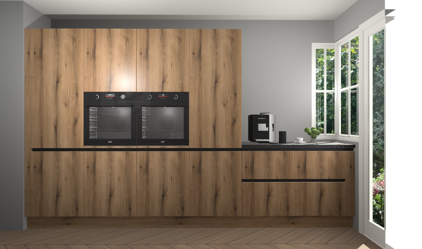 Bent u op zoek naar een opvallende keuken die uw stijl en smaak weerspiegelt? Zo ja, dan is onze prachtige Goud Eiken greeploze keuken Olympia de perfecte oplossing. Deze prachtige keuken biedt een unieke combinatie van geraffineerd modern design en gebruiksgemak.