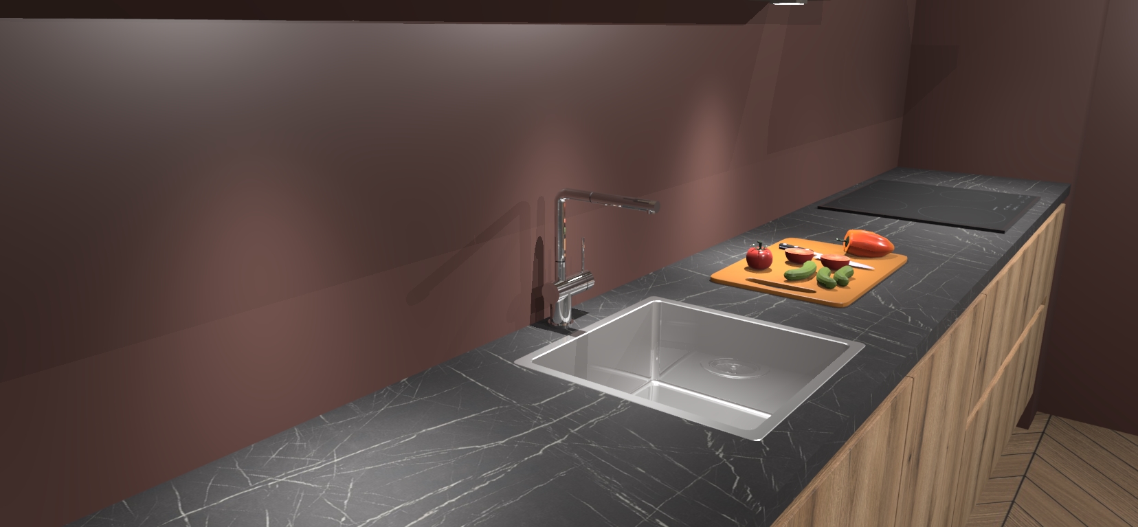 - Uitsparing van kookplaat, spoelbak en kraan dient u zelf te verzorgen.