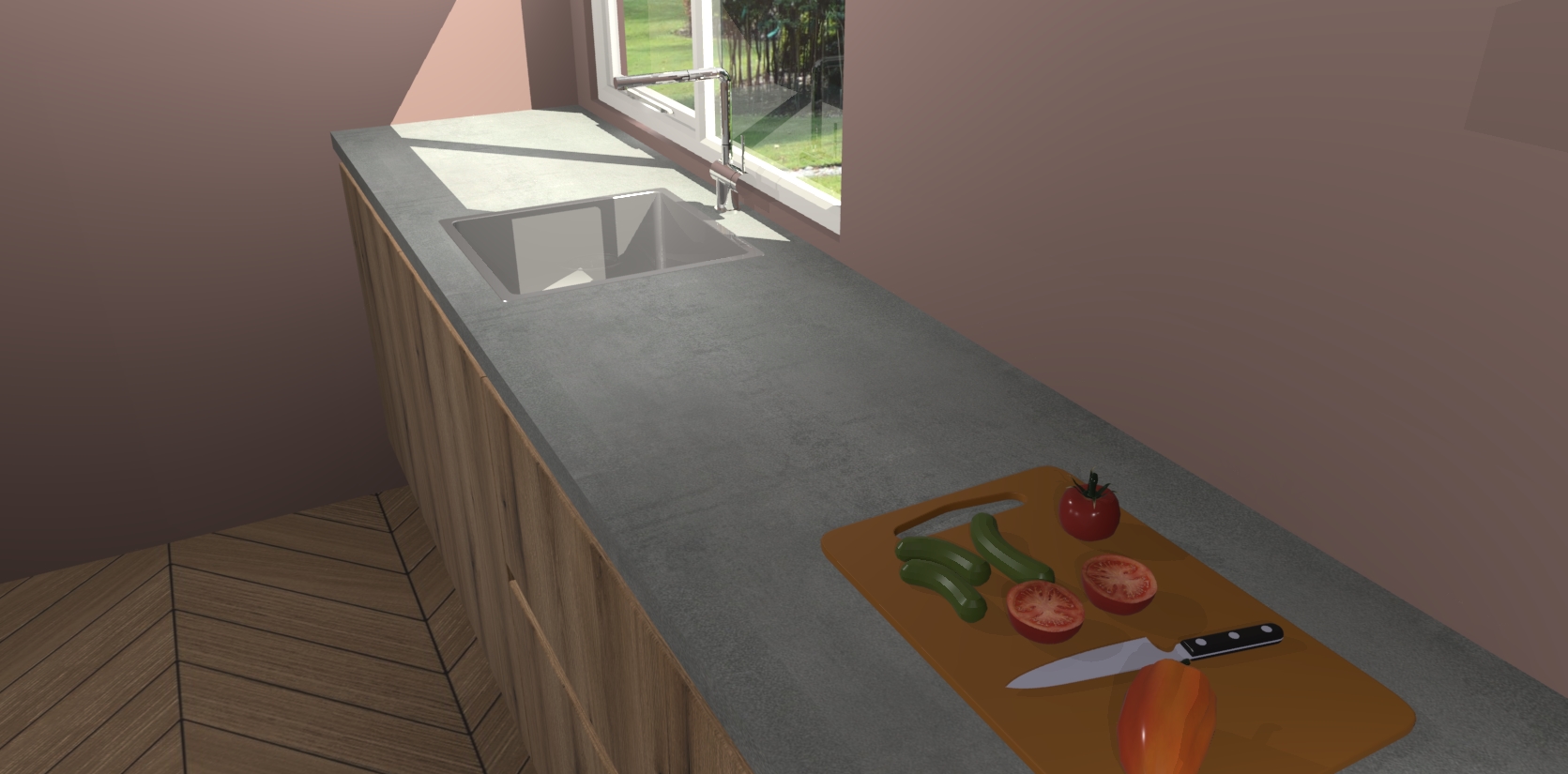 - Bij een hoekwerkblad zijn de hoeken in gevreesd en op maat gemaakt