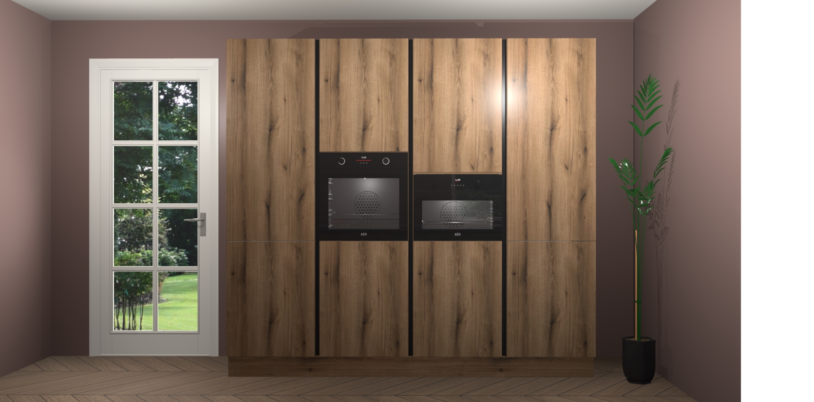Dankzij de greeploze afwerking past de Goud Eiken greeploze keuken Turijn naadloos in elk huis of appartement. De soft-close deuren geven je extra gemoedsrust, want ze sluiten vanzelf en slaan nooit dicht! En alsof dat nog niet genoeg is, worden deze kasten volledig gemonteerd geleverd, dus maak je geen zorgen over eventuele installatieproblemen.