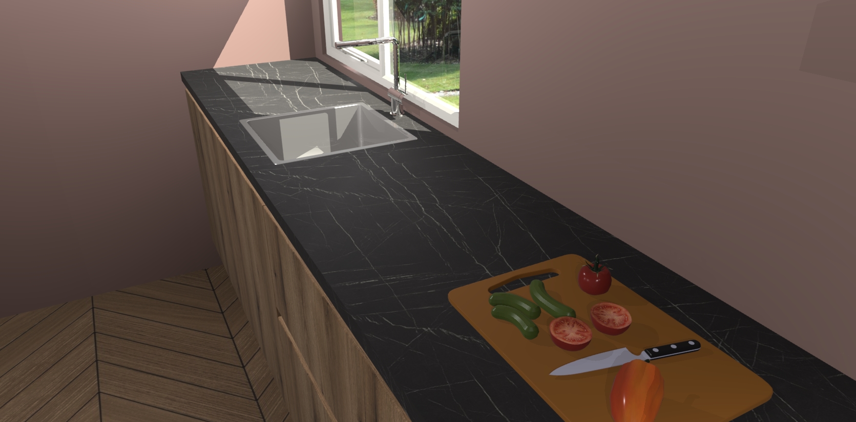- Bij een hoekwerkblad zijn de hoeken in gevreesd en op maat gemaakt