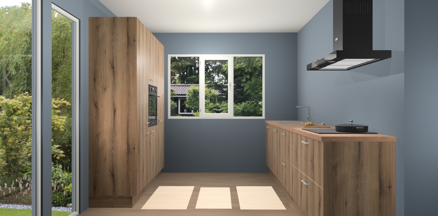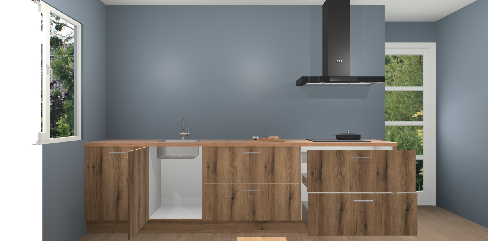 De softclose deuren openen en sluiten is ook heel eenvoudig - geniet van een moeiteloze keukenervaring, zelfs als er kinderen rondlopen. Voor extra gemak bij het plaatsen van uw bestelling bieden we ook een upgrade naar een kookplaat met geïntegreerde afzuiging.