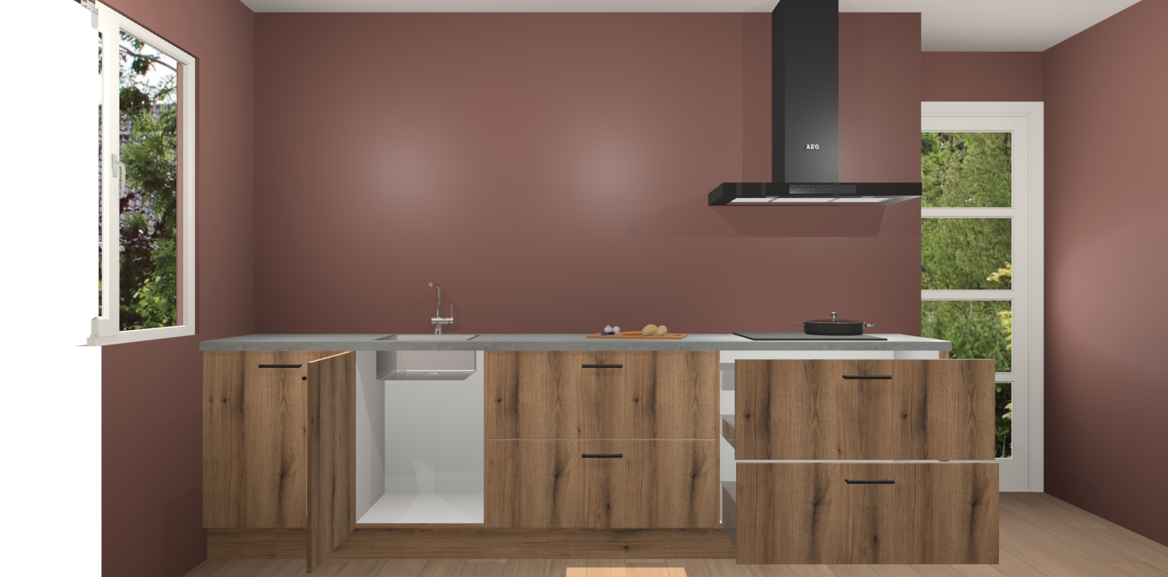 De softclose deuren openen en sluiten is ook heel eenvoudig - geniet van een moeiteloze keukenervaring, zelfs als er kinderen rondlopen. Voor extra gemak bij het plaatsen van uw bestelling bieden we ook een upgrade naar een kookplaat met geïntegreerde afzuiging.