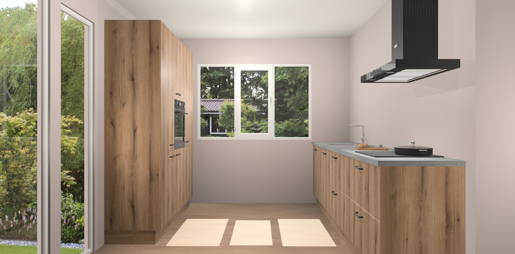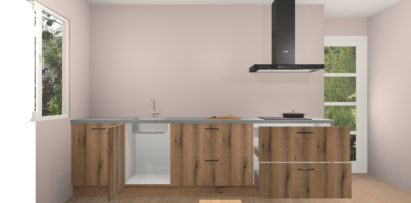 De softclose deuren openen en sluiten is ook heel eenvoudig - geniet van een moeiteloze keukenervaring, zelfs als er kinderen rondlopen. Voor extra gemak bij het plaatsen van uw bestelling bieden we ook een upgrade naar een kookplaat met geïntegreerde afzuiging.