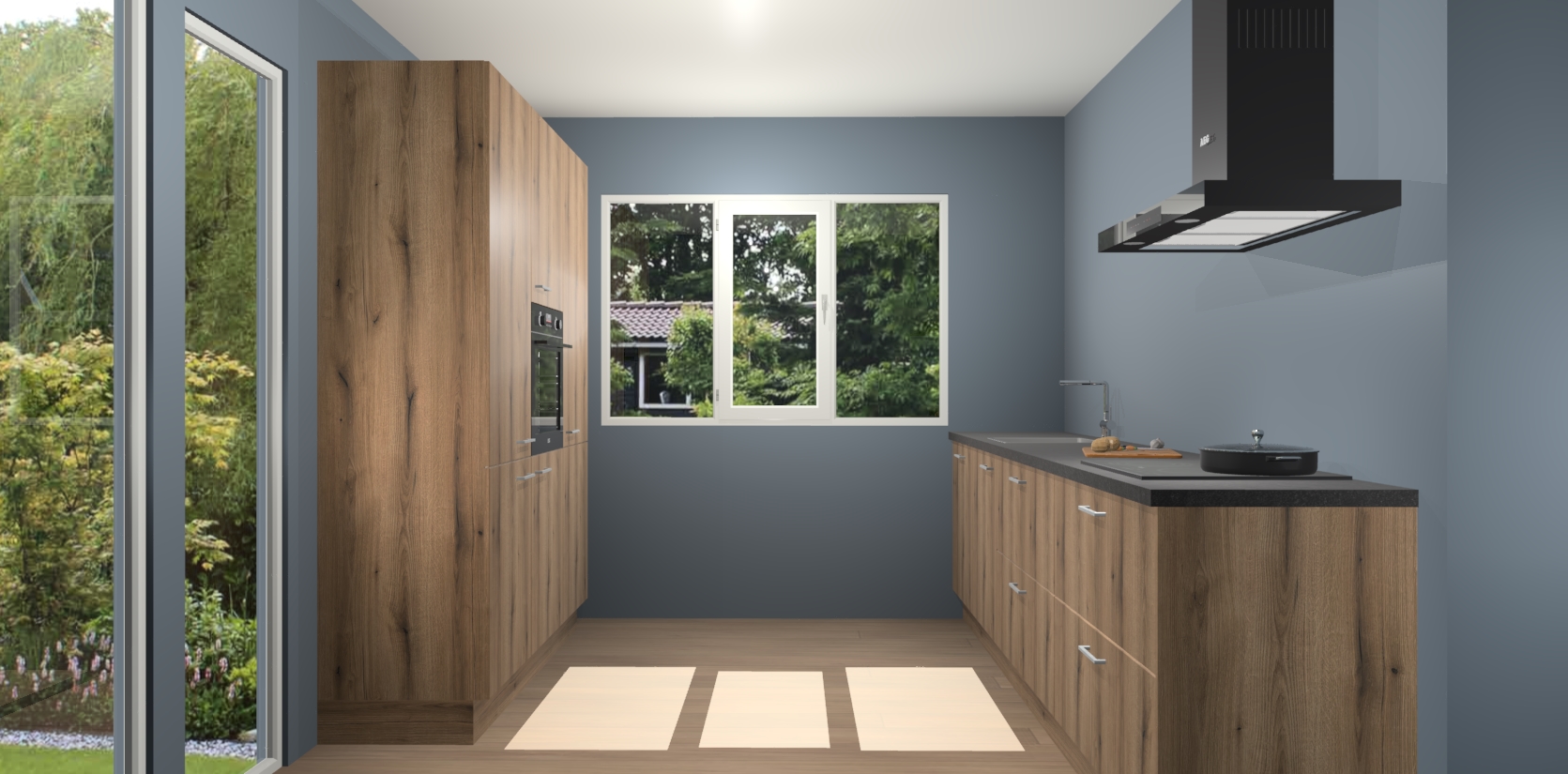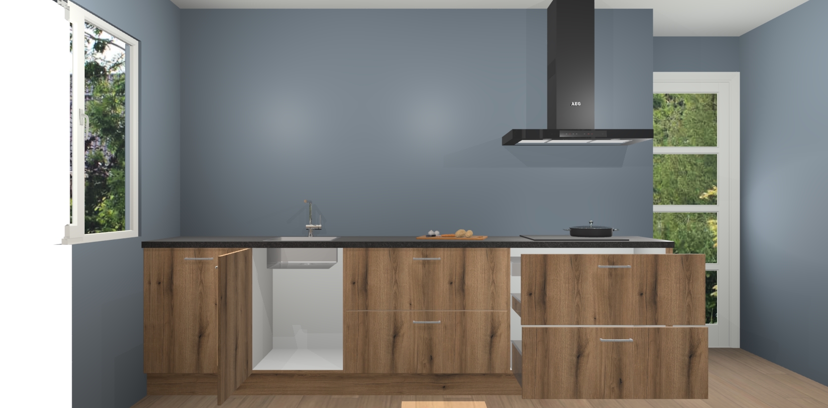 De softclose deuren openen en sluiten is ook heel eenvoudig - geniet van een moeiteloze keukenervaring, zelfs als er kinderen rondlopen. Voor extra gemak bij het plaatsen van uw bestelling bieden we ook een upgrade naar een kookplaat met geïntegreerde afzuiging.