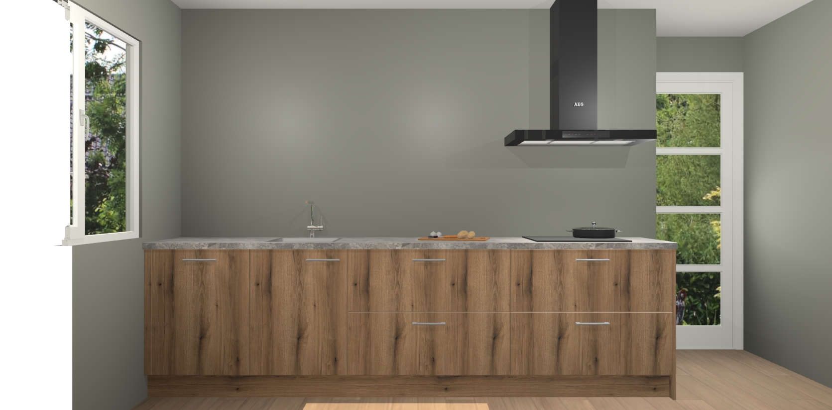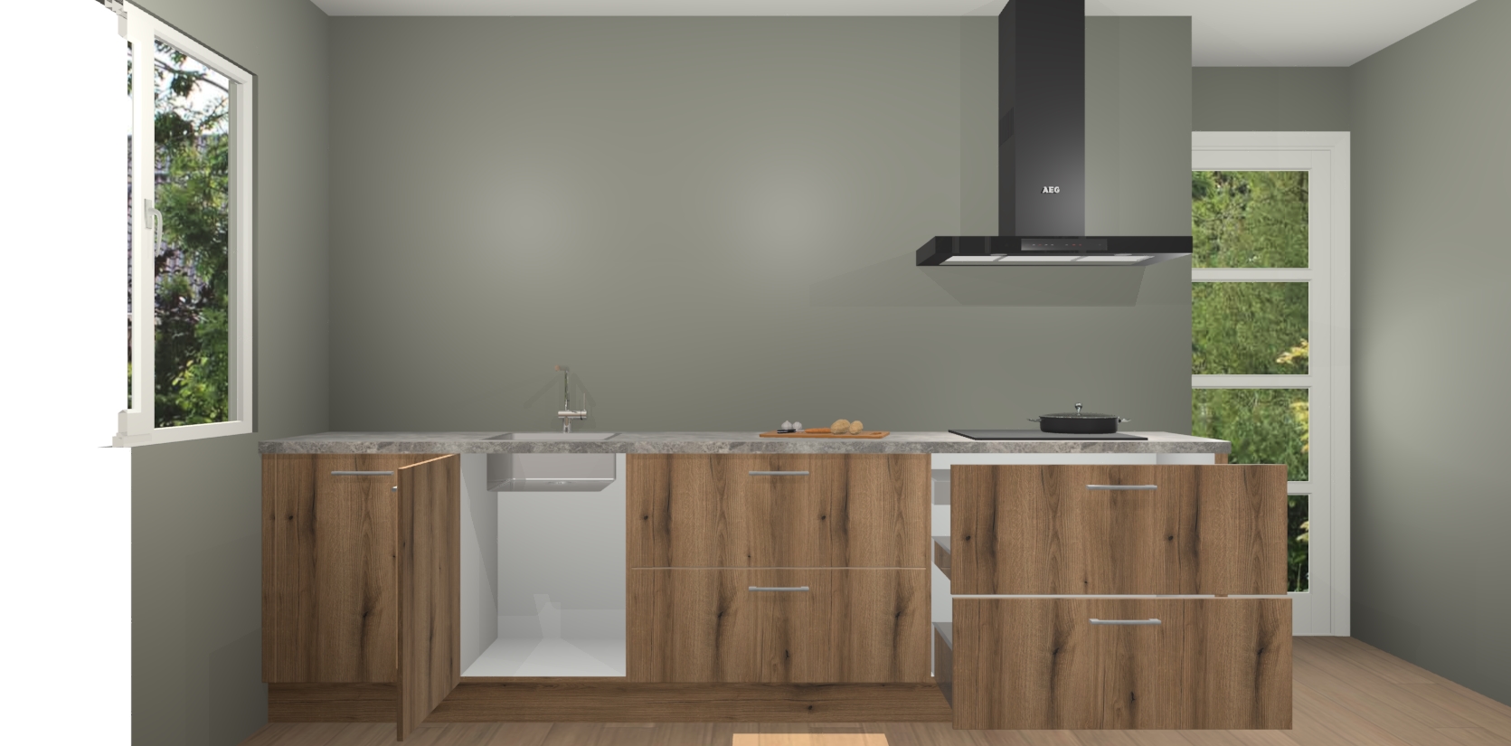 De softclose deuren openen en sluiten is ook heel eenvoudig - geniet van een moeiteloze keukenervaring, zelfs als er kinderen rondlopen. Voor extra gemak bij het plaatsen van uw bestelling bieden we ook een upgrade naar een kookplaat met geïntegreerde afzuiging.