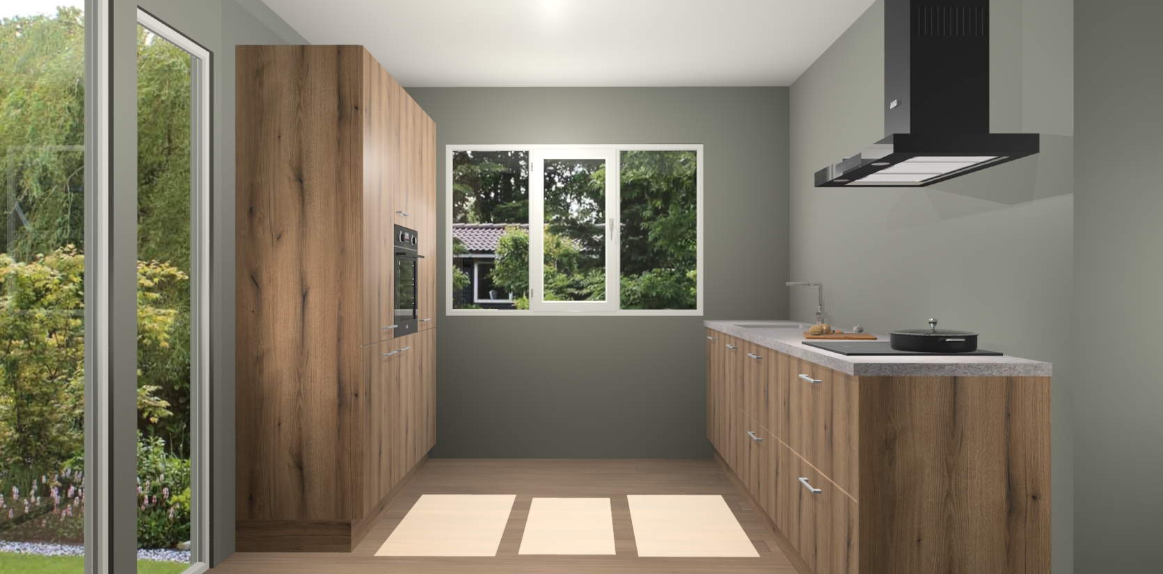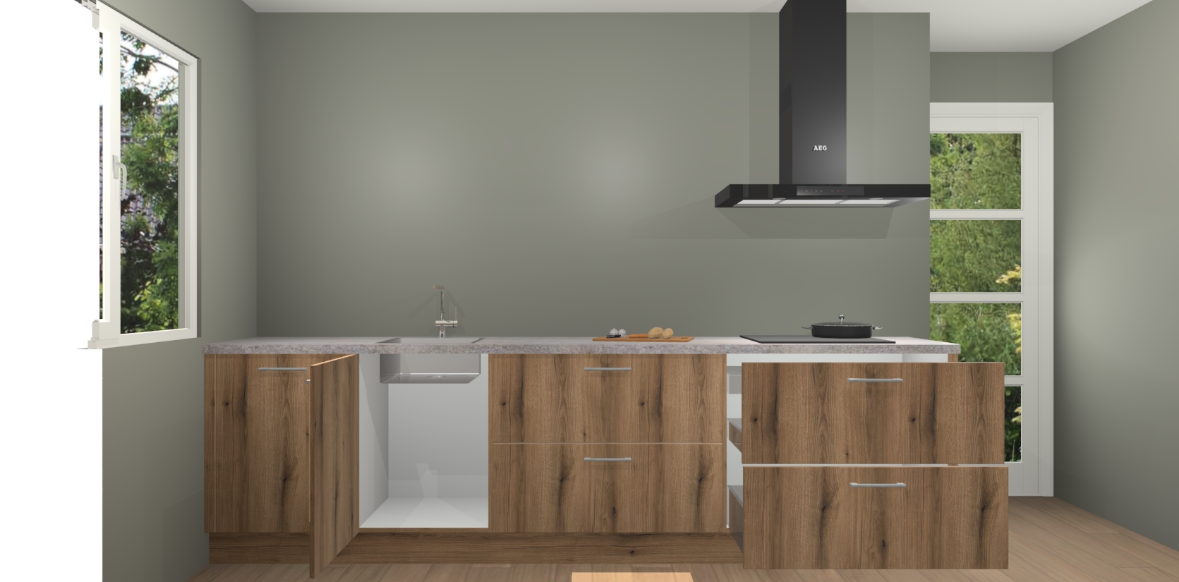 De softclose deuren openen en sluiten is ook heel eenvoudig - geniet van een moeiteloze keukenervaring, zelfs als er kinderen rondlopen. Voor extra gemak bij het plaatsen van uw bestelling bieden we ook een upgrade naar een kookplaat met geïntegreerde afzuiging.