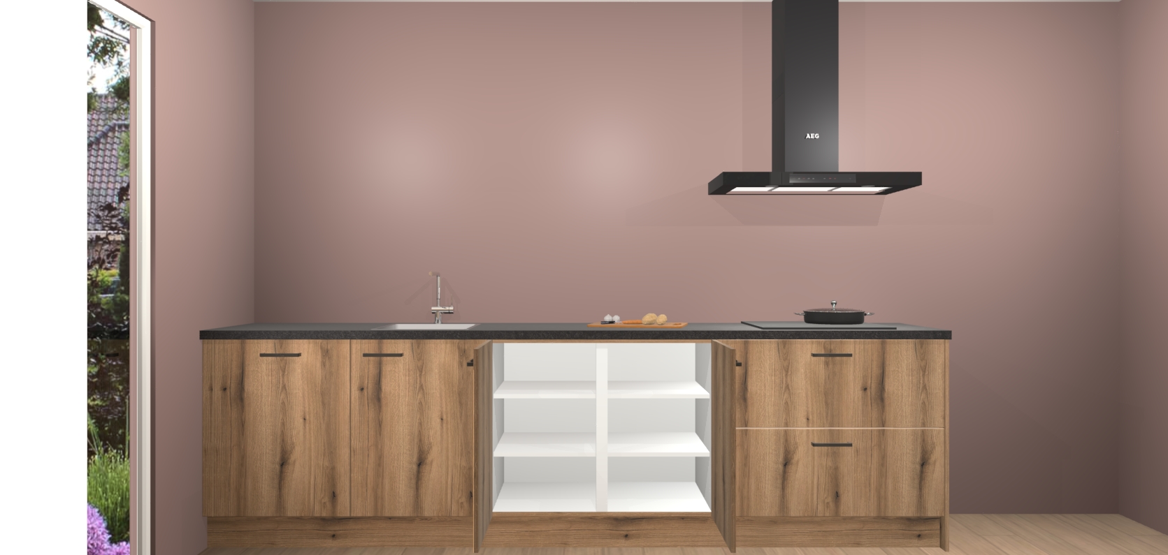 De softclose deuren openen en sluiten is ook heel eenvoudig - geniet van een moeiteloze keukenervaring, zelfs als er kinderen rondlopen. Voor extra gemak bij het plaatsen van uw bestelling bieden we ook een upgrade naar een kookplaat met geïntegreerde afzuiging.