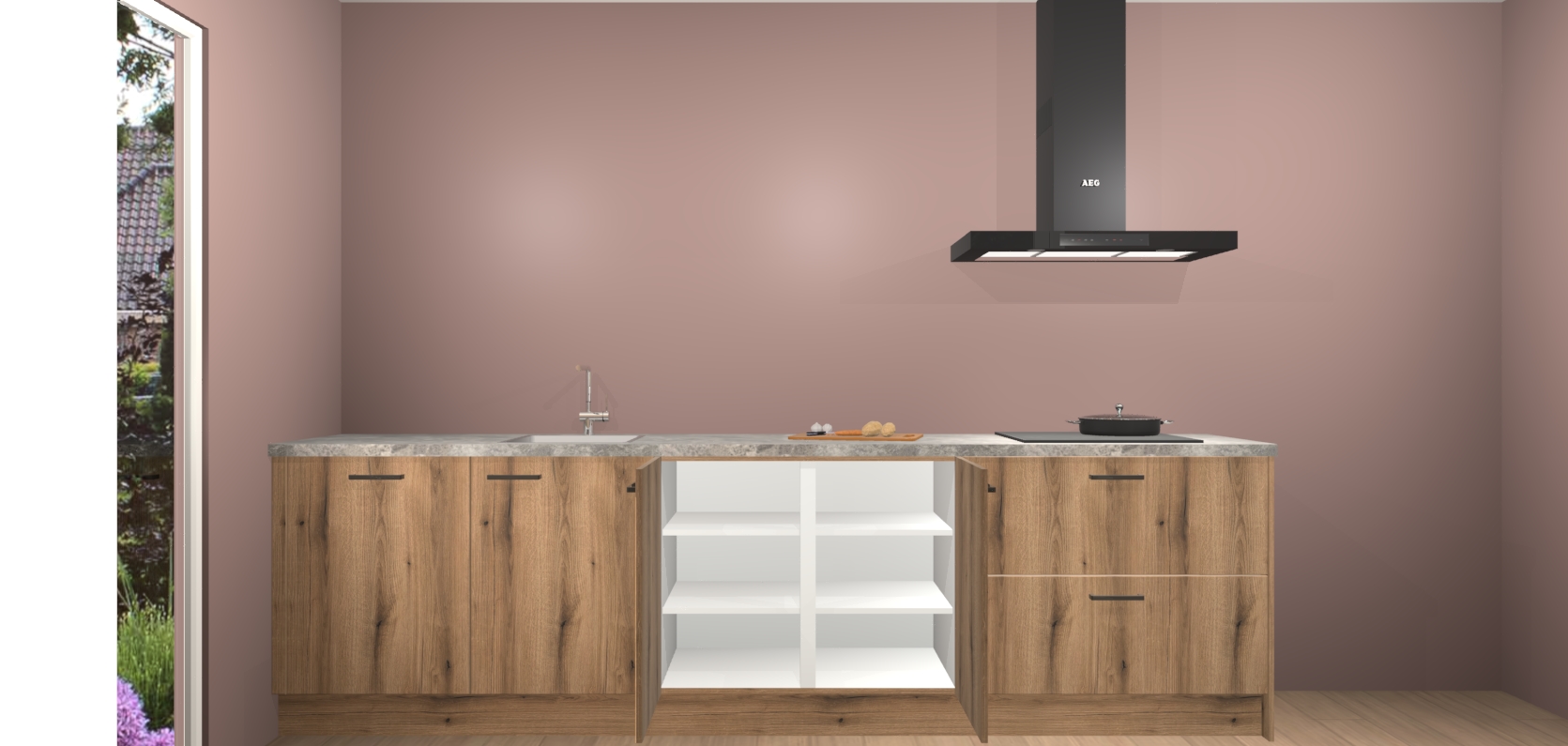 De softclose deuren openen en sluiten is ook heel eenvoudig - geniet van een moeiteloze keukenervaring, zelfs als er kinderen rondlopen. Voor extra gemak bij het plaatsen van uw bestelling bieden we ook een upgrade naar een kookplaat met geïntegreerde afzuiging.