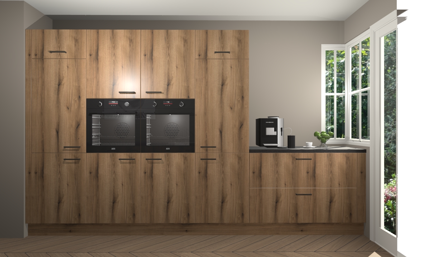 Dankzij de afwerking past de Goud Eiken keuken Olympia naadloos in elk huis of appartement. De soft-close deuren geven je extra gemoedsrust, want ze sluiten vanzelf en slaan nooit dicht! En alsof dat nog niet genoeg is, worden deze kasten volledig gemonteerd geleverd, dus maak je geen zorgen over eventuele installatieproblemen.