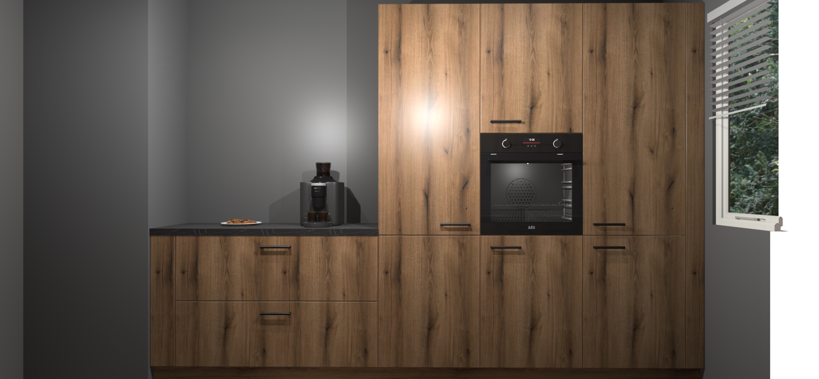 Dankzij de afwerking past de Goud Eiken keuken Siena naadloos in elk huis of appartement. De soft-close deuren geven je extra gemoedsrust, want ze sluiten vanzelf en slaan nooit dicht! En alsof dat nog niet genoeg is, worden deze kasten volledig gemonteerd geleverd, dus maak je geen zorgen over eventuele installatieproblemen.