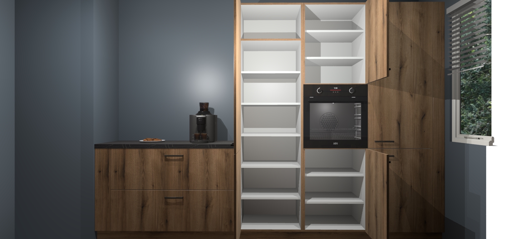 Een stijlvolle en praktische keuken als deze mag gezien worden. Dankzij de prachtige Goud Eiken matte afwerking wordt de keuken gemakkelijk het middelpunt van uw huis - hij ziet er geweldig uit onder allerlei lichtomstandigheden, van dag tot nacht!