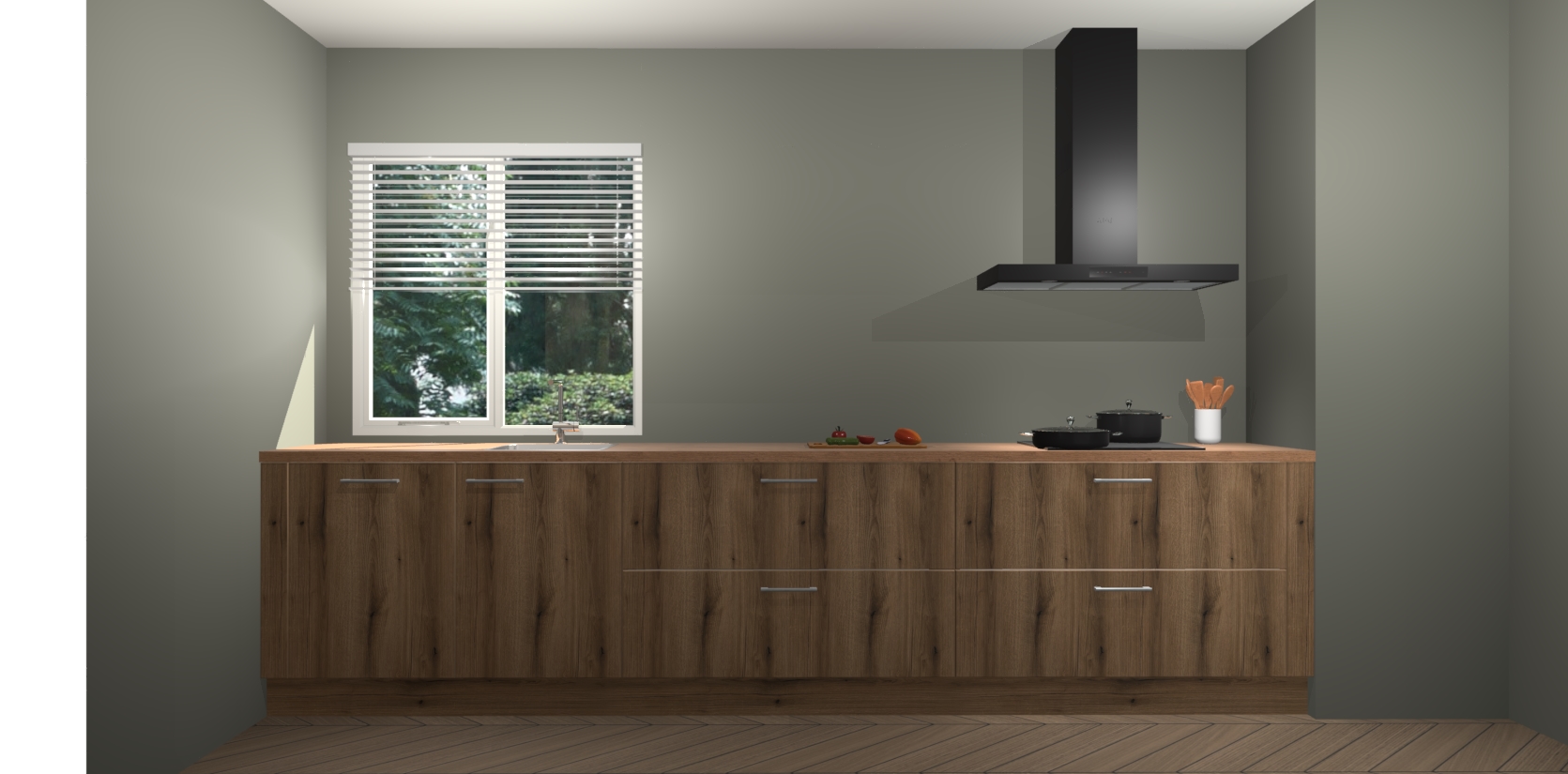 Dankzij de afwerking past de Goud Eiken keuken Turijn naadloos in elk huis of appartement. De soft-close deuren geven je extra gemoedsrust, want ze sluiten vanzelf en slaan nooit dicht! En alsof dat nog niet genoeg is, worden deze kasten volledig gemonteerd geleverd, dus maak je geen zorgen over eventuele installatieproblemen.