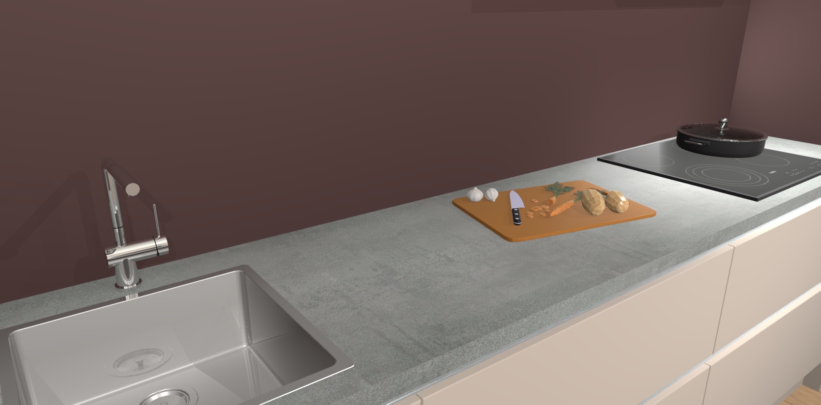 Inclusief plinten, stelpoten en werkblad