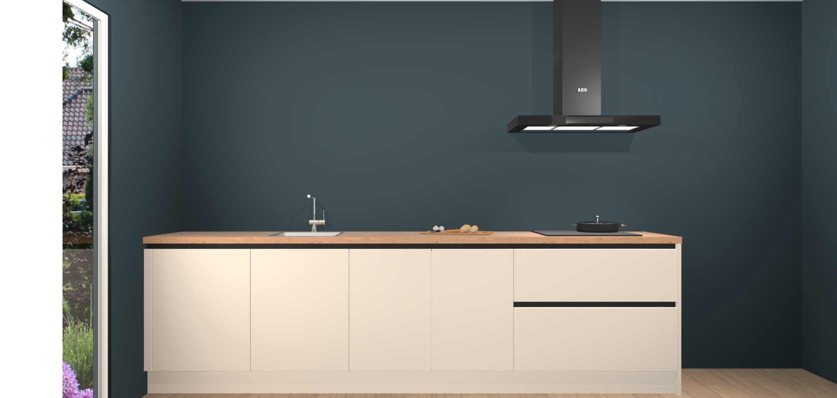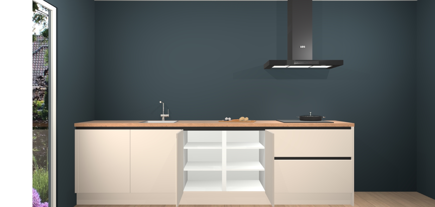 De softclose deuren openen en sluiten is ook heel eenvoudig - geniet van een moeiteloze keukenervaring, zelfs als er kinderen rondlopen. Voor extra gemak bij het plaatsen van uw bestelling bieden we ook een upgrade naar een kookplaat met geïntegreerde afzuiging.